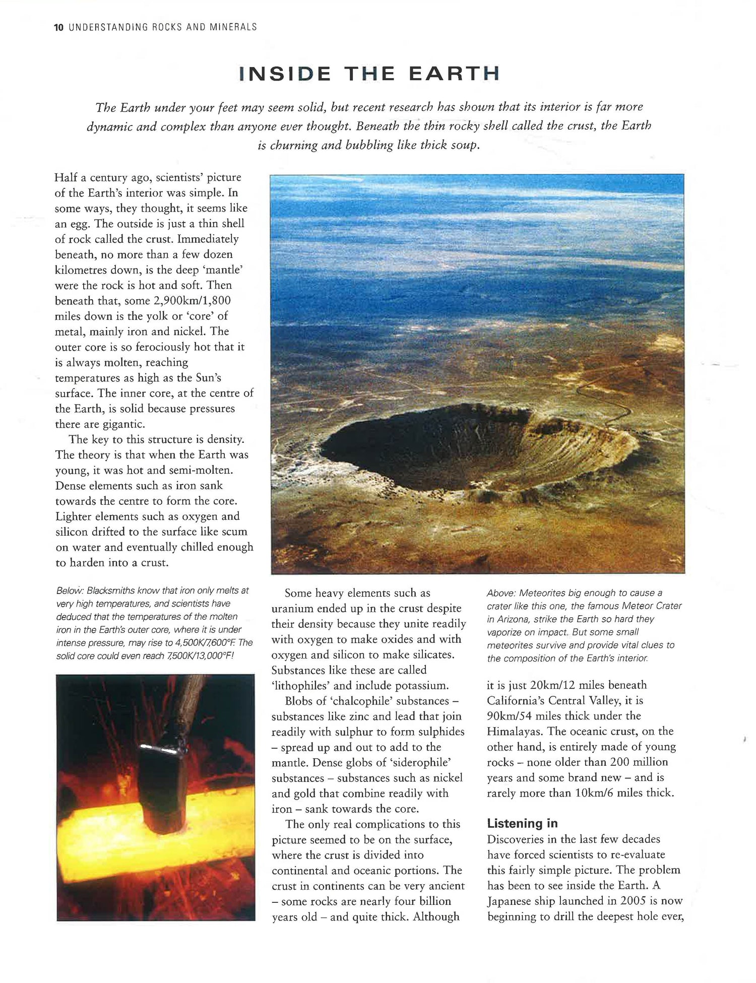 This is the ultimate photographic guide to the world of rocks and minerals, and how to build your own collection. A comprehensive introduction explains the formation and classification of the many types of rock, mineral, and gemstones, with clear photographs of some of the world's most bizarre and beautiful examples. Expertly written text describes the impact of factors such as time, weather and water erosion on the development of rocks and minerals in the landscape, and the part played by natural phenomena such as volcanoes and earthquakes. It clarifies how contact with heat and pressure can affect external characteristics, and prompt the metamorphosis of one rock into another. There is advice for the amateur geologist on using equipment, field work, maps, tools and home testing techniques, to identify and source geological specimens. A comprehensive photographic directory illustrates over 300 examples of minerals and rocks from all over the world. Specimens are grouped according to their chemical composition and characteristics, and all entries include quick-reference identification checklists to aid recognition. Featuring over 800 photographs and artworks, this is a visual encyclopedia and field guide on a richly consuming and endlessly fascination subject.