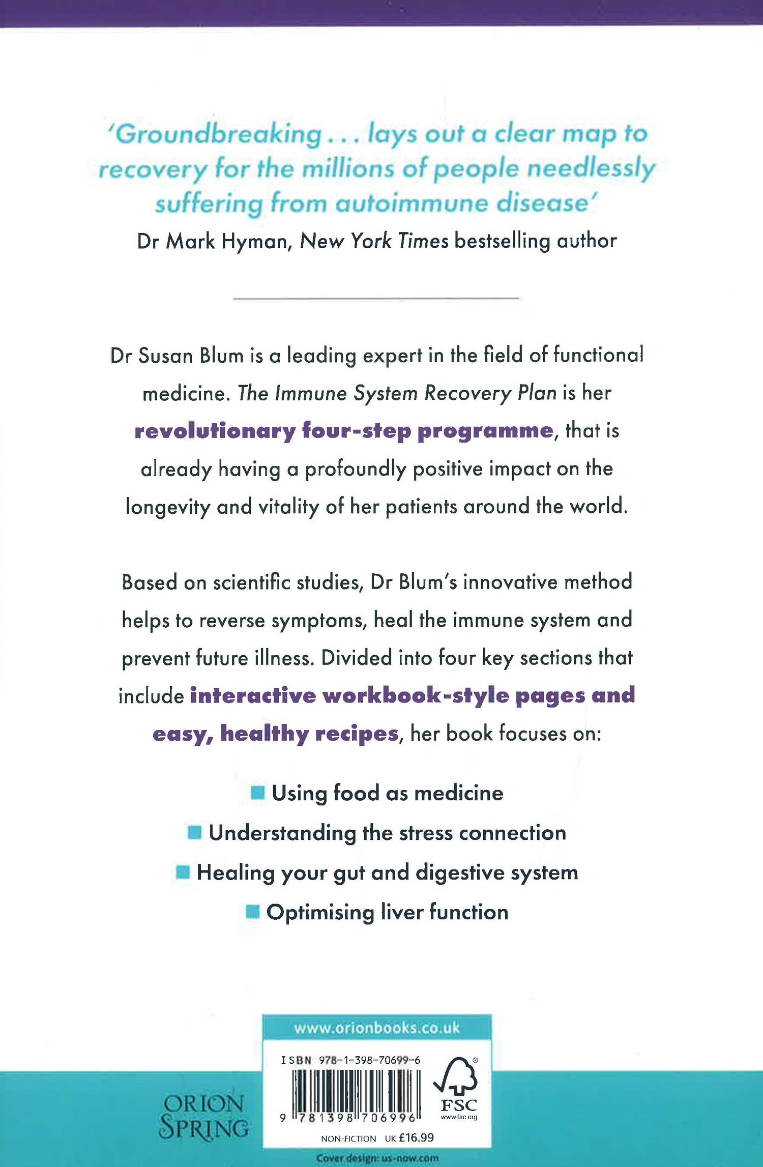 A leading doctor of functional medicine, Dr Susan Blum includes her innovative four-step method in this book, which focuses on:
