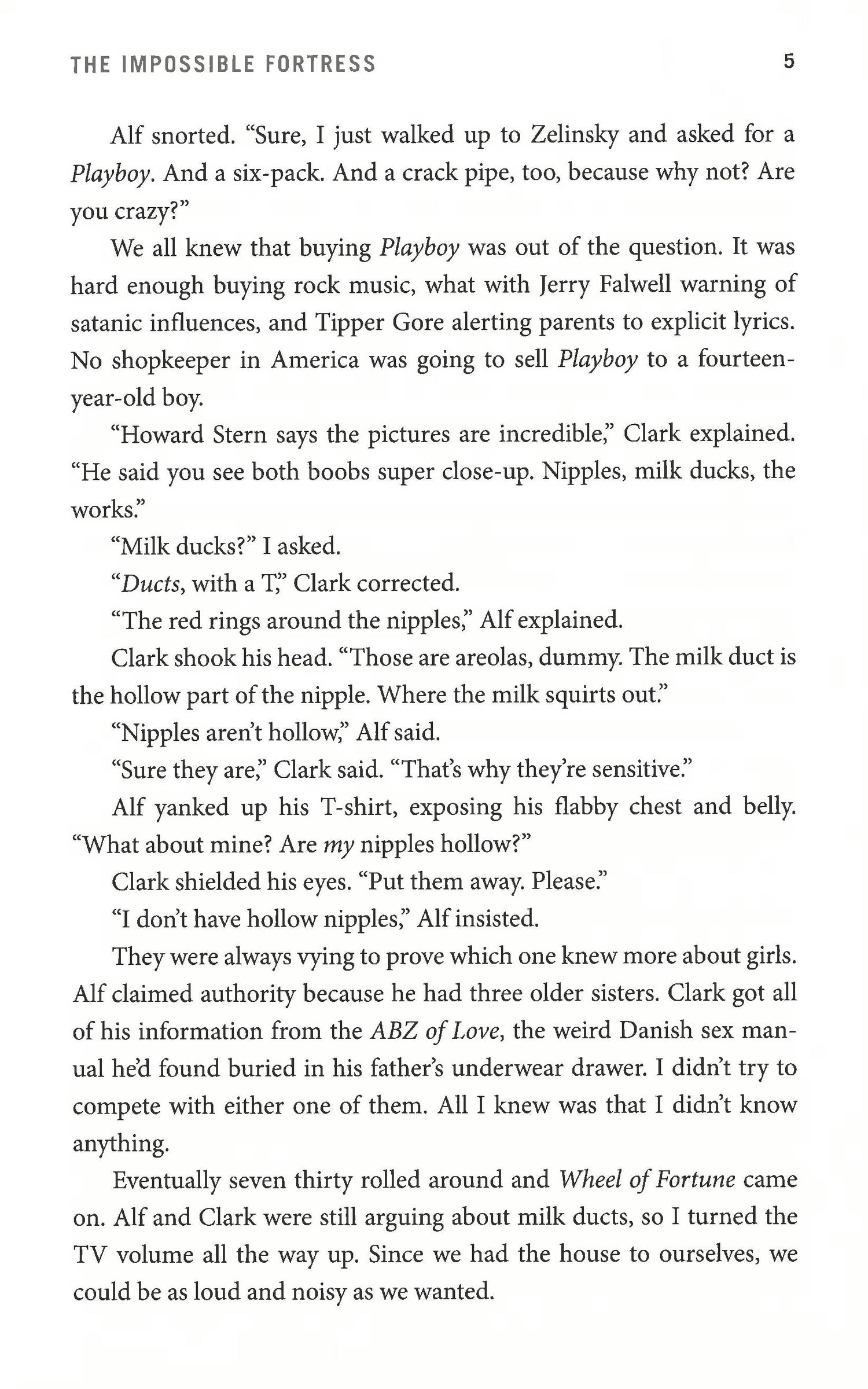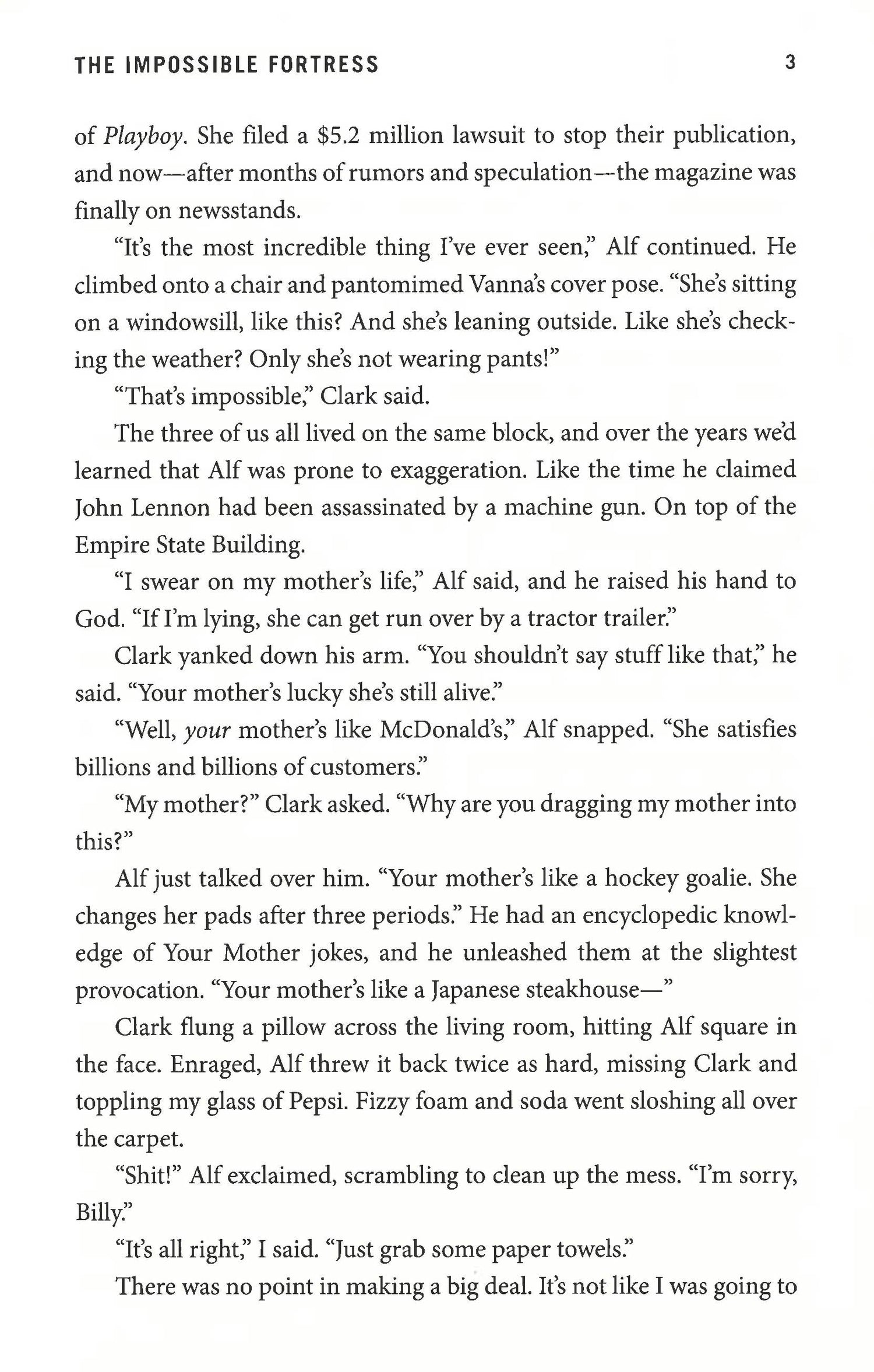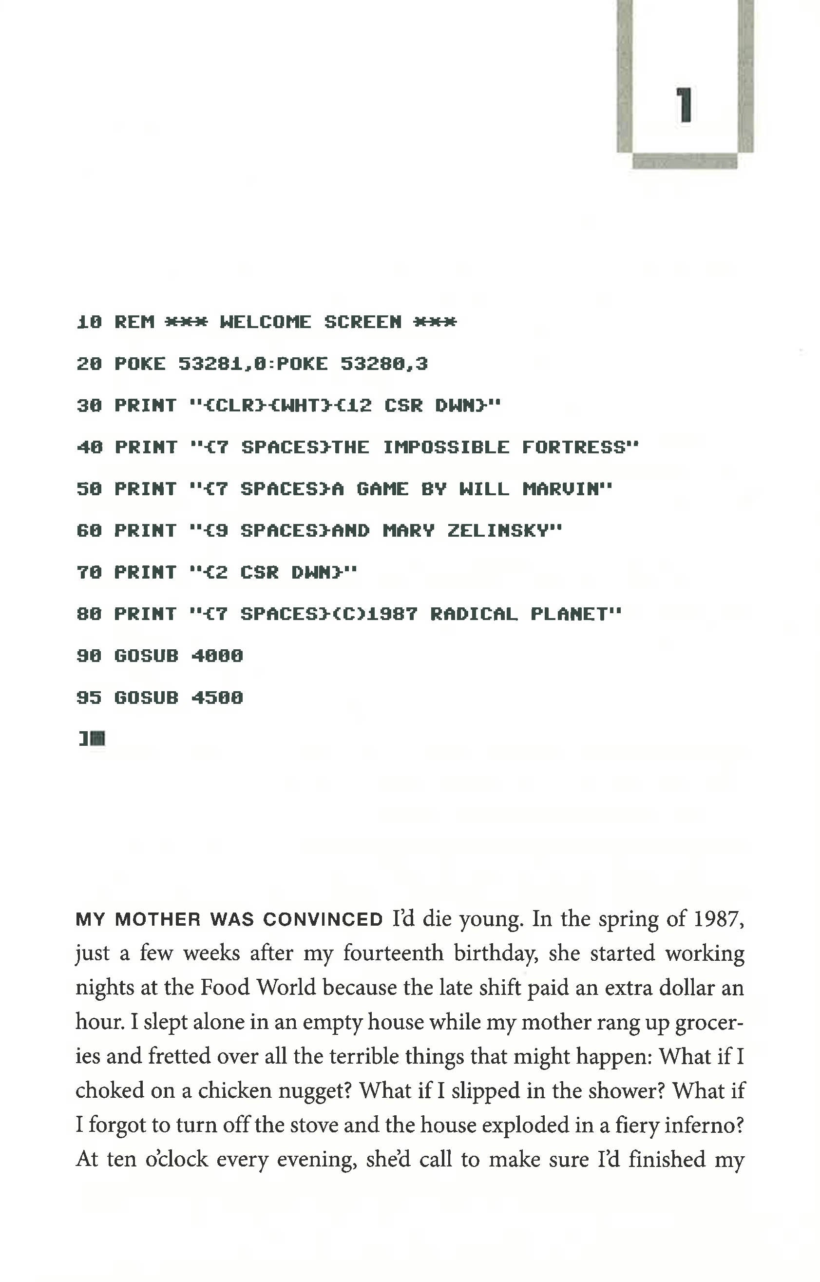 *MOST ANTICIPATED NOVELS OF 2017 SELECTION BY * ENTERTAINMENT WEEKLY * BUSTLE * "A sweet, funny, and moving tribute to nerds and misfits everywhere." --Seth Grahame-Smith, New York Times bestselling author of Pride and Prejudice and Zombies Until May 1987, fourteen-year-old Billy Marvin of Wetbridge, New Jersey, is a nerd, but a decidedly happy nerd. Afternoons are spent with his buddies, watching copious amounts of television, gorging on Pop-Tarts, debating who would win in a brawl (Rocky Balboa or Freddy Krueger? Bruce Springsteen or Billy Joel? Magnum P.I. Or T.J. Hooker?), and programming video games on his Commodore 64 late into the night. Then Playboy magazine publishes photos of Wheel of Fortune hostess Vanna White, Billy meets expert programmer Mary Zelinsky, and everything changes. A love letter to the 1980s, to the dawn of the computer age, and to adolescence--a time when anything feels possible--The Impossible Fortress will make you laugh, make you cry, and make you remember in exquisite detail what it feels like to love something--or someone--for the very first time. *This book may have remainder mark*