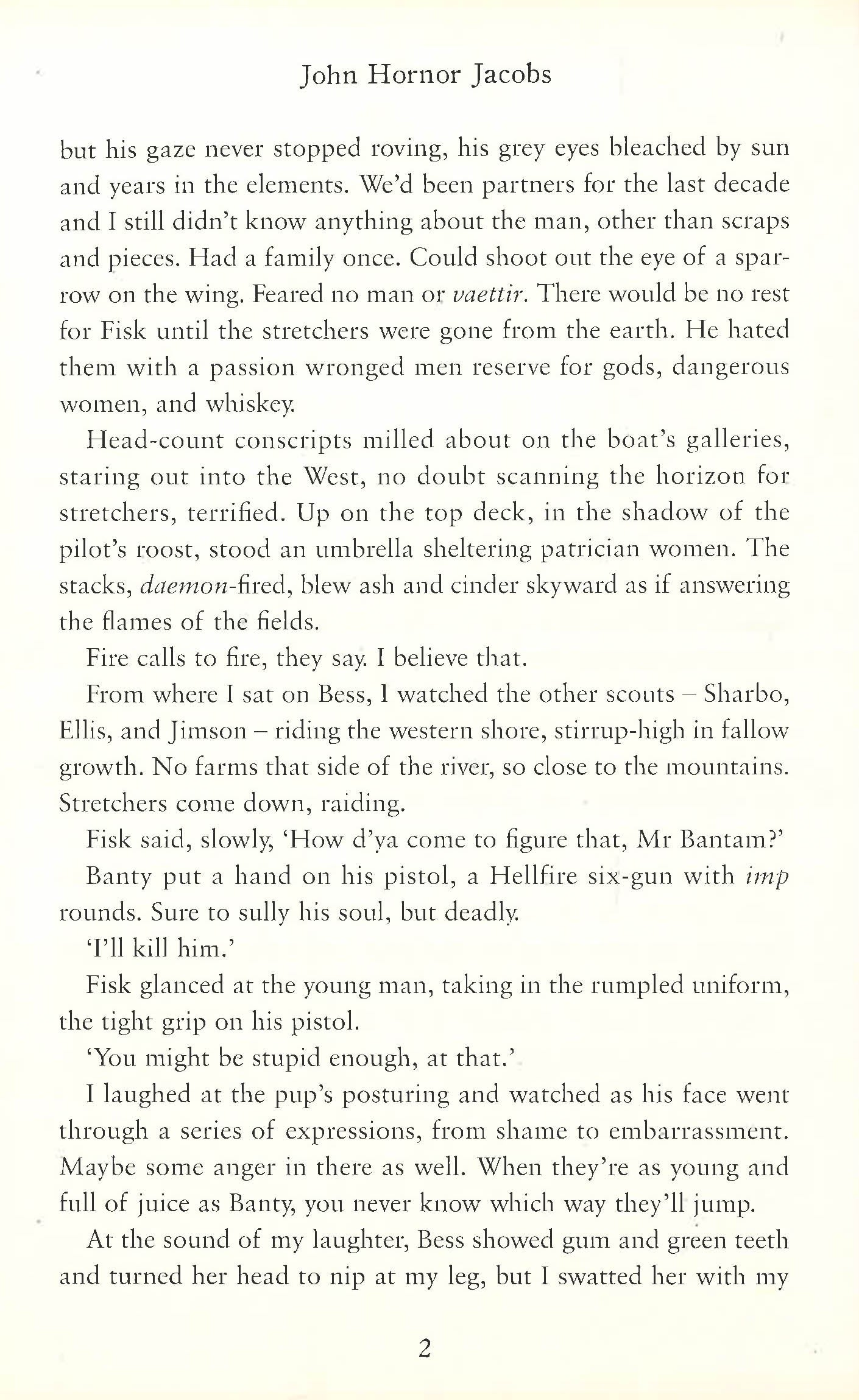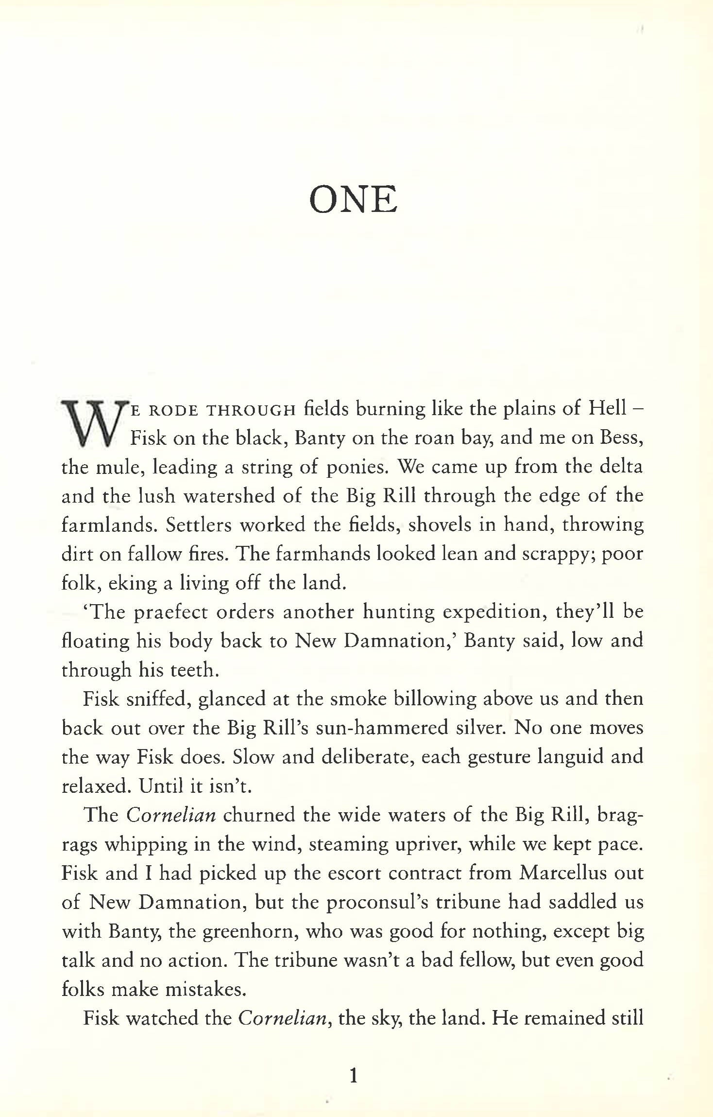 In the contested and unexplored territories at the edge of the Empire, a boat is making its laborious way up stream. Riding along the banks are the mercenaries hired to protect it - from raiders, bandits and, most of all, the stretchers, elf-like natives who kill any intruders into their territory. The mercenaries know this is dangerous, deadly work. But it is what they do. In the boat the drunk governor of the territories and his sons and daughters make merry. They believe that their status makes them untouchable. They are wrong. And with them is a mysterious, beautiful young woman, who is the key to peace between warring nations and survival for the Empire. When a callow mercenary saves the life of the Governor on an ill-fated hunting party, the two groups are thrown together. For Fisk and Shoe - two tough, honourable mercenaries surrounded by corruption, who know they can always and only rely on each other - their young companion appears to be playing with fire. The nobles have the power, and crossing them is always risky. And although love is a wonderful thing, sometimes the best decision is to walk away. Because no matter how untouchable or deadly you may be, the stretchers have other plans.