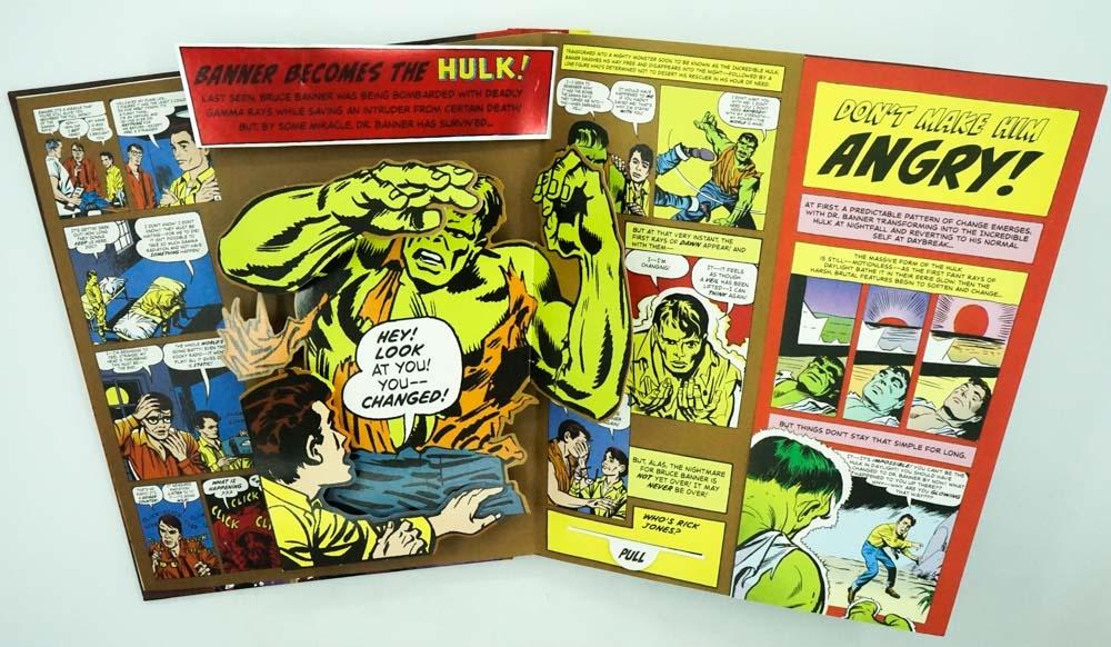 Meet the Incredible Hulk hapless scientist Bruce Banner turned humungous Super Hero after an accidental run-in with gamma rays. See him transform into his gargantuan form, and watch as he uses his massive strength to toss a jeep in the air, fight the Abomination, wrestle with a giant robot, battle pink androids, and more. This latest in a poptastic series featuring original 1960s comic-book excerpts, leap-out-at-you pop-ups, dramatic action-packed gatefolds, and slide-out character fact files is a rare treat for seasoned Marvel devotees and brand-new fans alike.