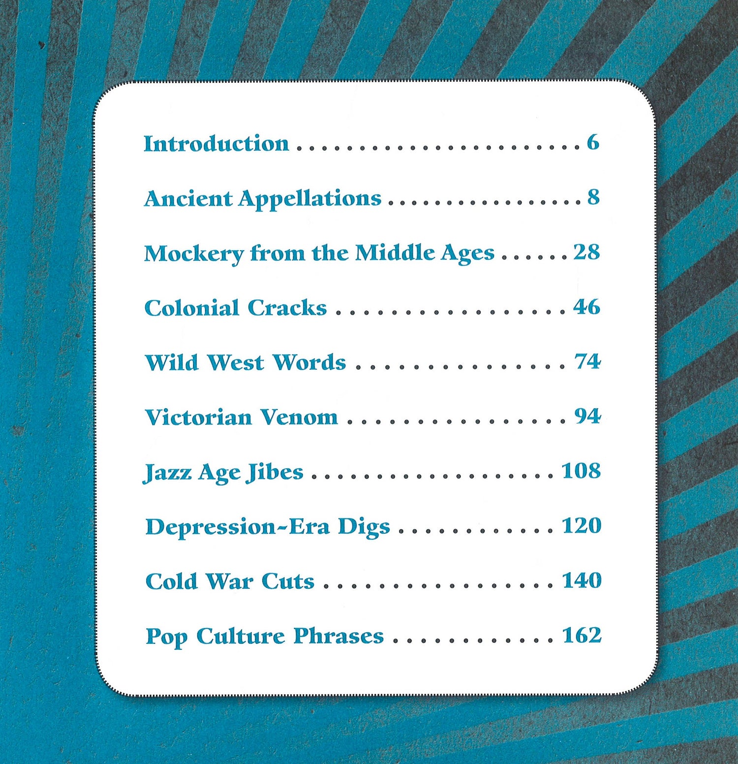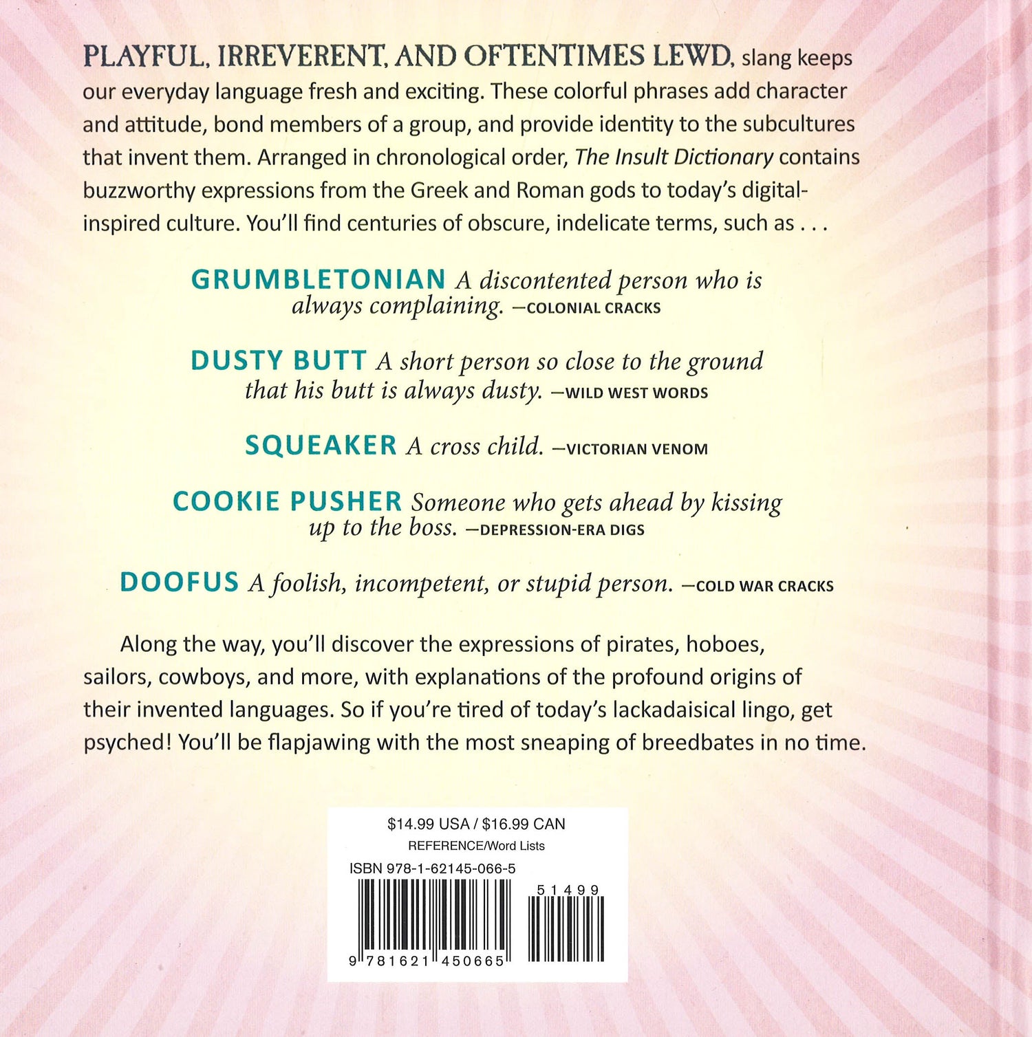 This fun reference book contains insults ranging from Roman times and Shakespearean snipes to salty pirate-speak and Wild West zingers. You're sure to find an insult for everyone, be they a helminth or a swinge-buckler. Do you long for the days when a jerk was a "cad"? Want to tell that "swillbelly" to clean up his table manners and that grumbling "glump" to stop whining? Would you like a way of saying simpleton that's not quite so simple--"ninnyhammer," perhaps? All this nastiness and more can be found in the pages of this fun reference book. With insults ranging from Roman times (lutum lenonium = filthy pimp) and Shakespearean snipes (I'm talking to you, you knotty-pated fool) to salty pirate-speak and Wild West zingers, you're sure to find an insult for everyone, be they a helminth (a parasite in Ancient Greece) or a swinge-buckler (an Elizabethan braggart). Chapters are organized chronologically by historical period--Ancient Attacks, Medieval Madness, Edgy Elizabethans, Victorian Venom, Jazz Age Jibes, and Cold War Cuts--and include themed sidebars focusing on Pirate Put-Downs, Hobo Huffs, and Cowboy Curses, as well as samplers for words with many different sayings per period. Fun, a little bit lewd, and incredibly informative this is a must-read for humor fans, history buffs, armchair etymologists, and the most sneaping of breedbates.