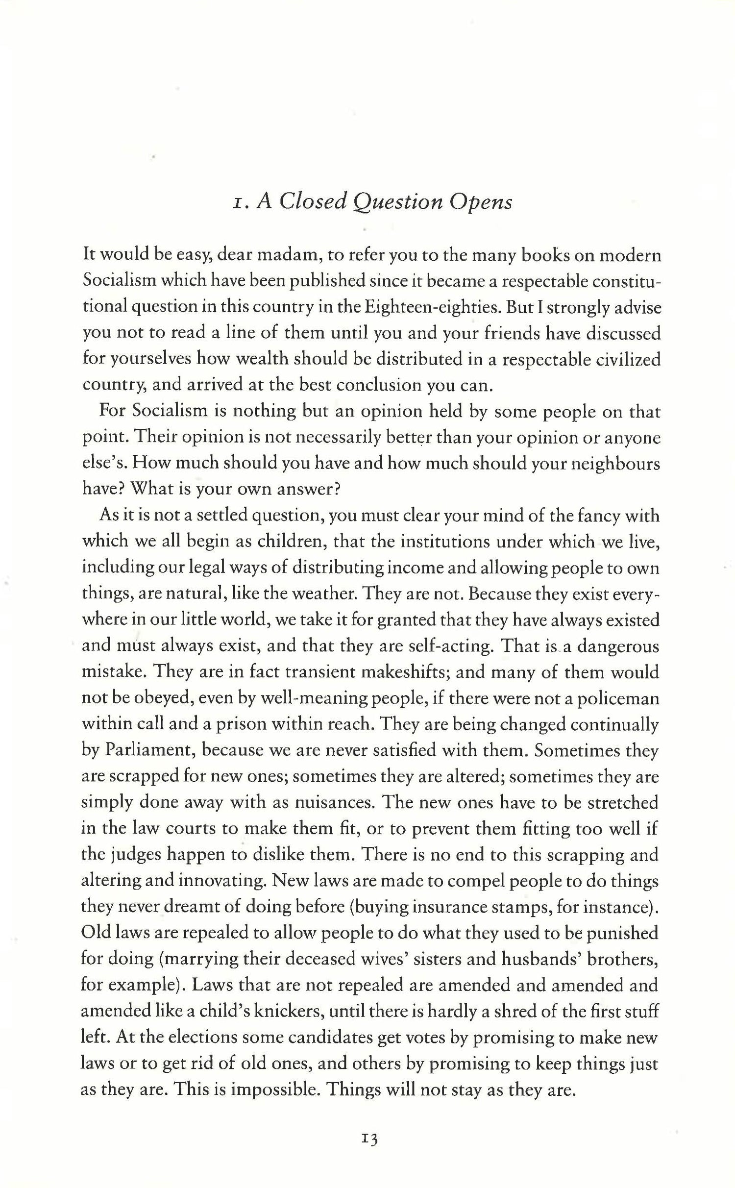 As a Fabian and lifelong socialist, Shaw believed that economic inequality was a poison destroying every aspect of our lives. Family affections and relations between the sexes were perverted by it. From Parliament to eduction our institutions were "corrupted at the root by pecuniary interest". Idealism, integrity and piecemeal attempts at political reform were all futile in the face of the gross injustice built into our economic system. And because a capitalist economy could never function smoothly, private property was not merely a form of robbery, but robbery with violence.