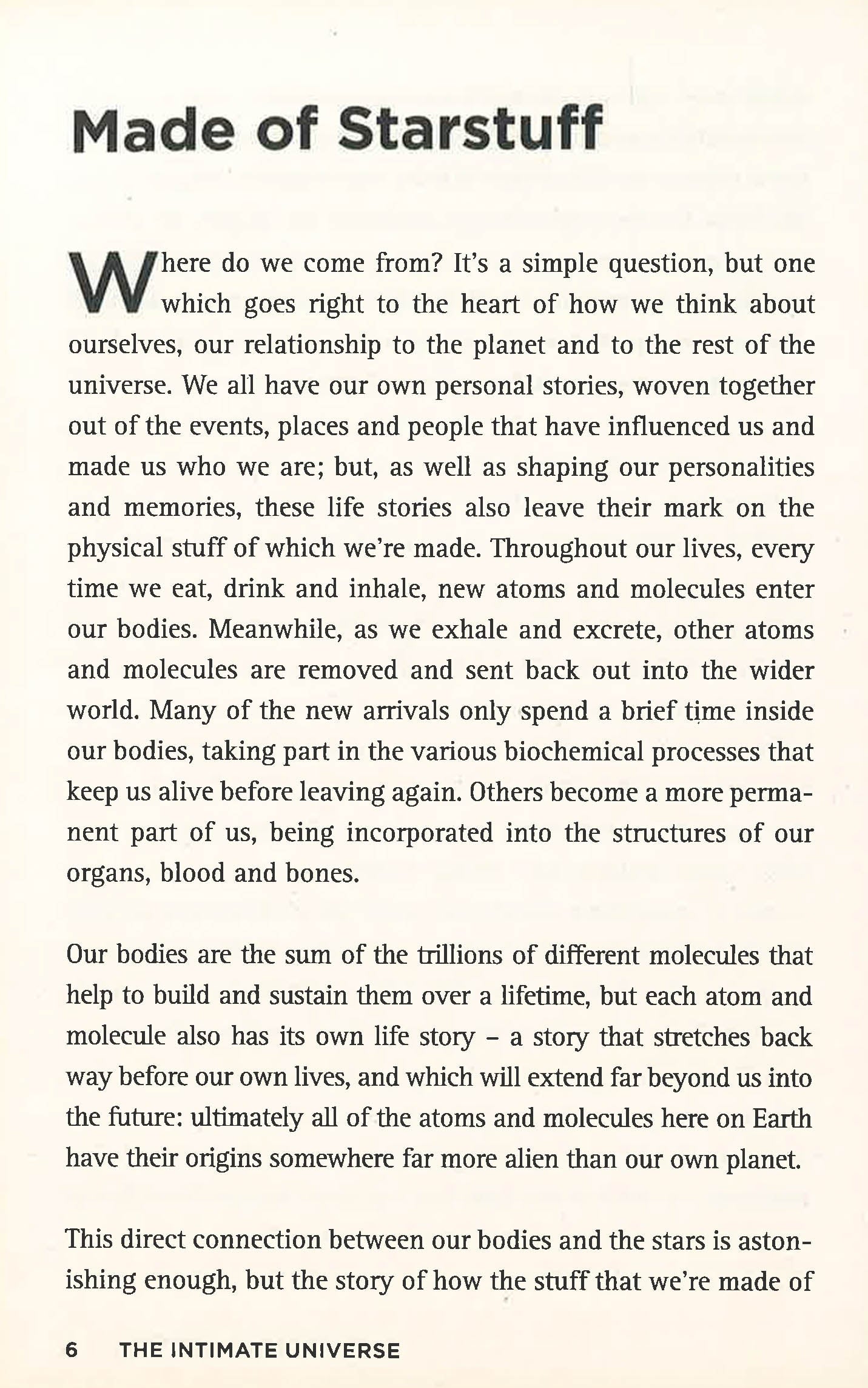 The scale of the cosmos can be baffling, with distances so vast and timescales to long that it's easy to dismiss them as being completely divorced from our everyday life. But in this new book Dr Marek Kukula, Public Astronomer at the Royal Observatory, Greenwich, shows you the myriad ways we are intrinsically connected to the rest of the universe and how everything on Earth - from the ground beneath our feet to the technology in our pockets - has origins in space. Discover how rocks from space reveal what conditions are like at our planet's core, how the desolate surface of the moon holds ancient clues to Earth's earliest life forms, and how buried treasure in the Nile reveals the watery past of Mars. Discover how the atoms of your own body were forged in the heart of a star, how you can see the echo of creation on your TV, and the ways in which technology developed for observing the most far-flung corners of space is now used to diagnose potentially fatal human diseases. The Intimate Universe is a curated tour of the most fascinating phenomena and discoveries in astronomy, revealing how we are inextricably, inspirationally linked to the cosmos.