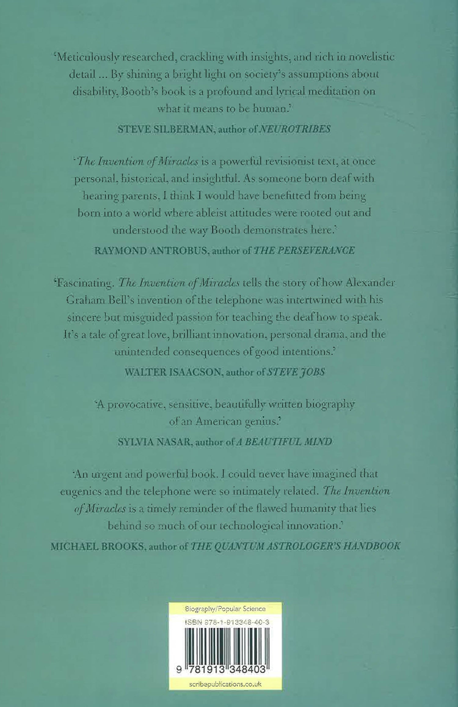 The Invention of Miracles tells the dual stories of Bell’s remarkable, world-changing invention and his dangerous ethnocide of deaf culture and language. It also charts the rise of deaf activism and tells the triumphant tale of a community reclaiming a once-forbidden language.