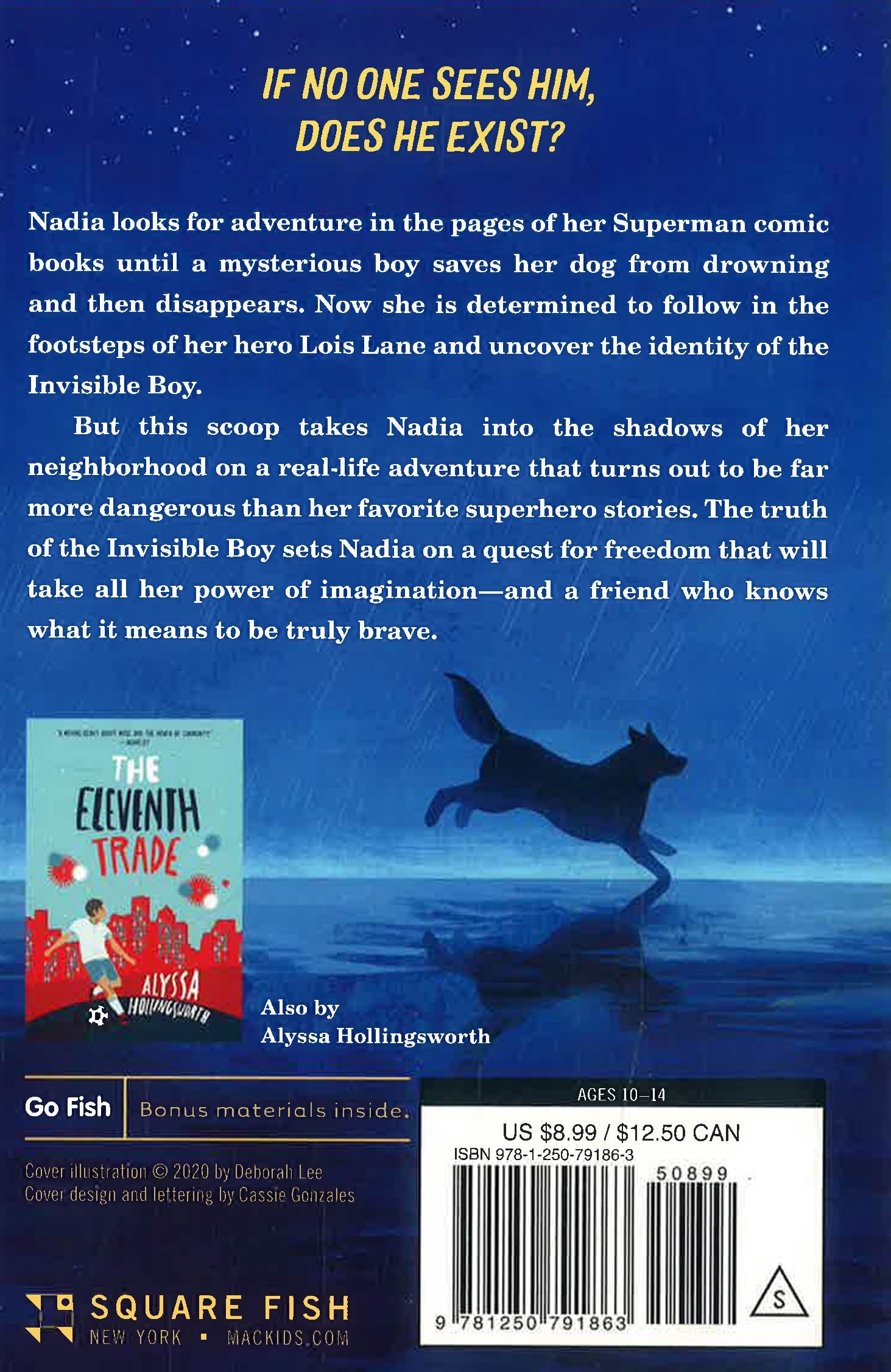 Nadia looks for adventure in the pages of her Superman comic books, until a mysterious boy saves her dog from drowning during a storm and then disappears. Now she finds herself in the role of Lois Lane, hunting down the scoop of the Invisible Boy. Suddenly she's in a real-life adventure that's far more dangerous than anything in her comic books.