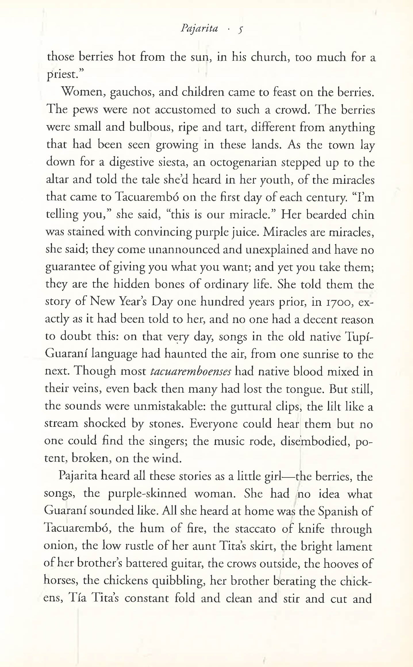 On the first day of the year 1900, a small town deep in the Uruguayan countryside gathers to witness a miracle--the mysterious reappearance Pajarita, a lost infant who will grow up to begin a lineage of fiercely independent women. Her daughter, Eva, a stubborn beauty intent on becoming a poet, overcomes a shattering betrayal to embark on a most unconventional path. And Eva's daughter, Salomé, awakens to both her sensuality and political convictions amid the violent turmoil of the late 1960s.