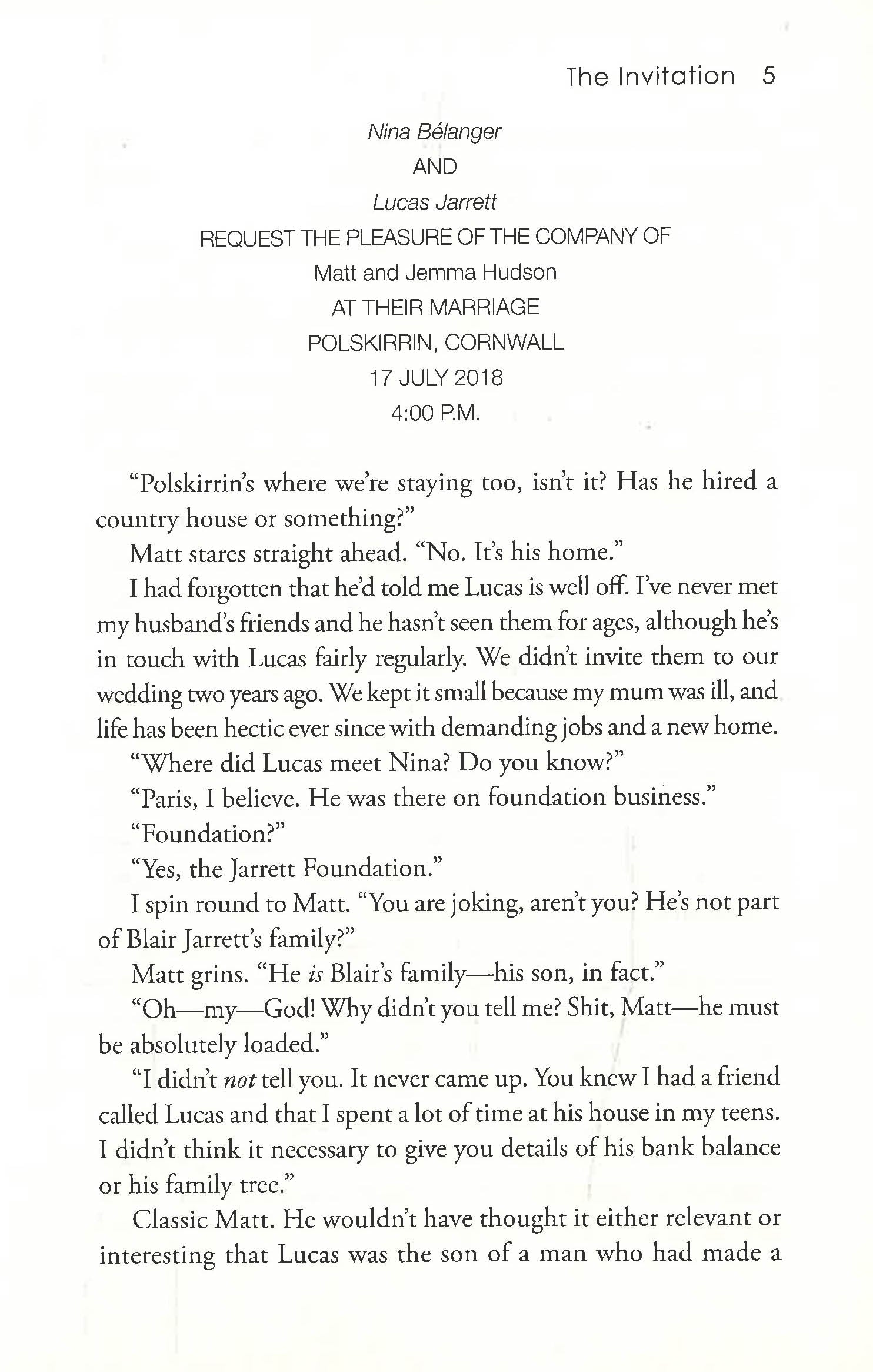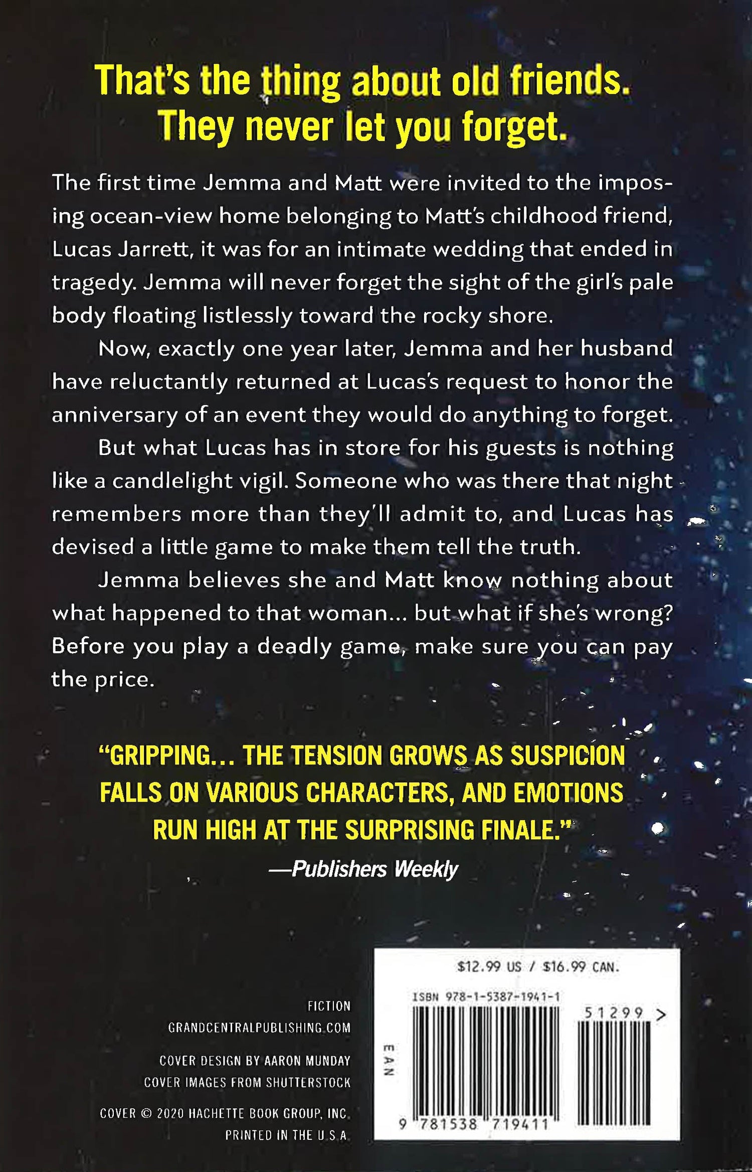 Now, exactly one year later, Jemma and her husband have reluctantly returned at Lucas's request to honor an anniversary they would do anything to forget.