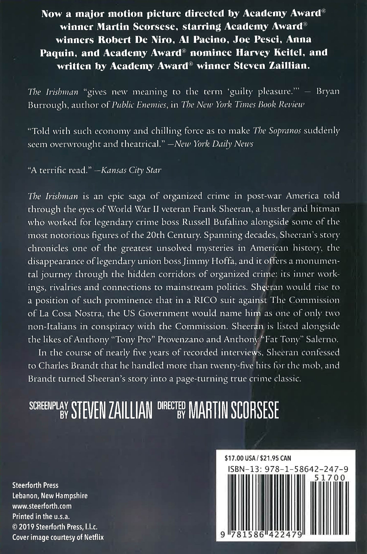 In the course of nearly five years of recorded interviews, Sheeran confessed to Charles Brandt that he handled more than twenty-five hits for the mob, and Brandt turned Sheeran's story into a page-turning true crime classic.