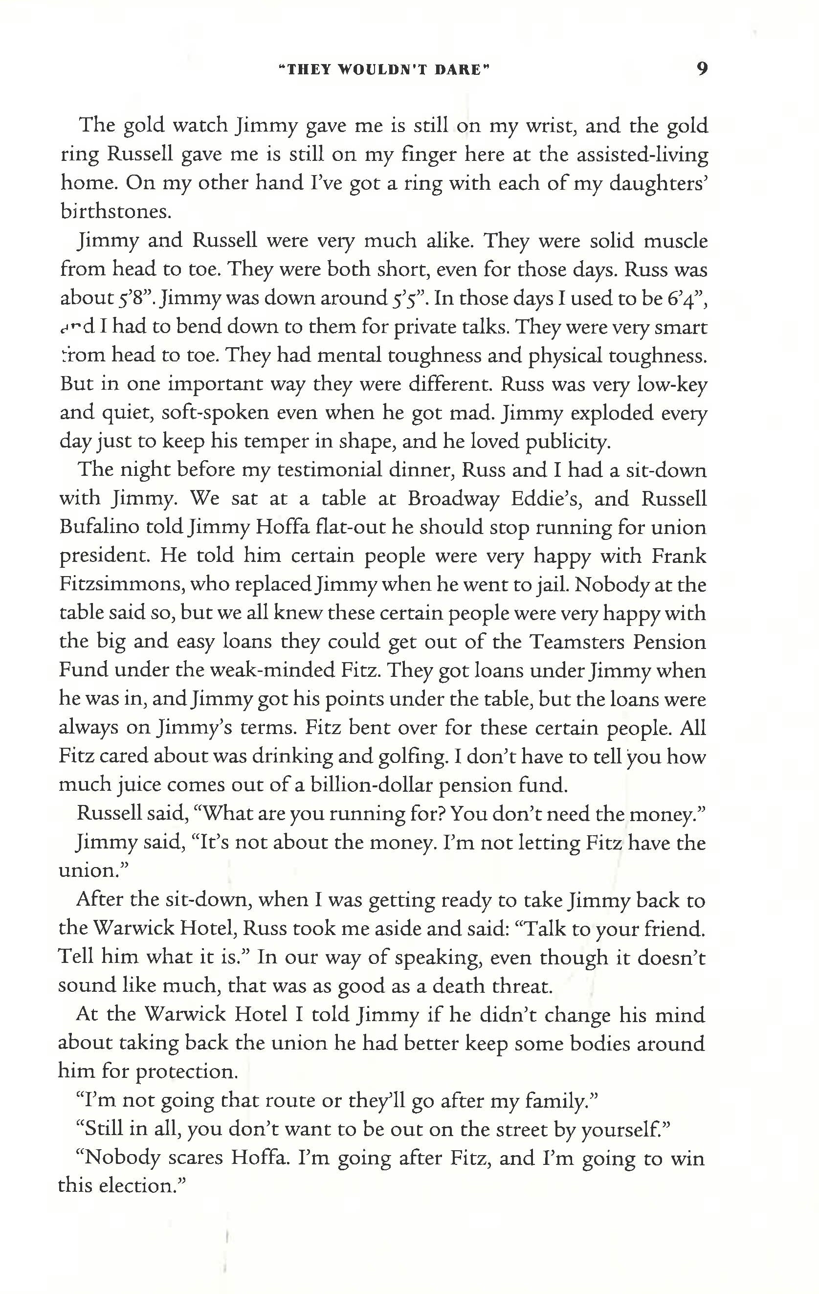 Includes an Epilogue and a Conclusion that detail substantial post-publication corroboration of Frank Sheeran's revelations about the killings of Jimmy Hoffa, Joey Gallo and JFK.