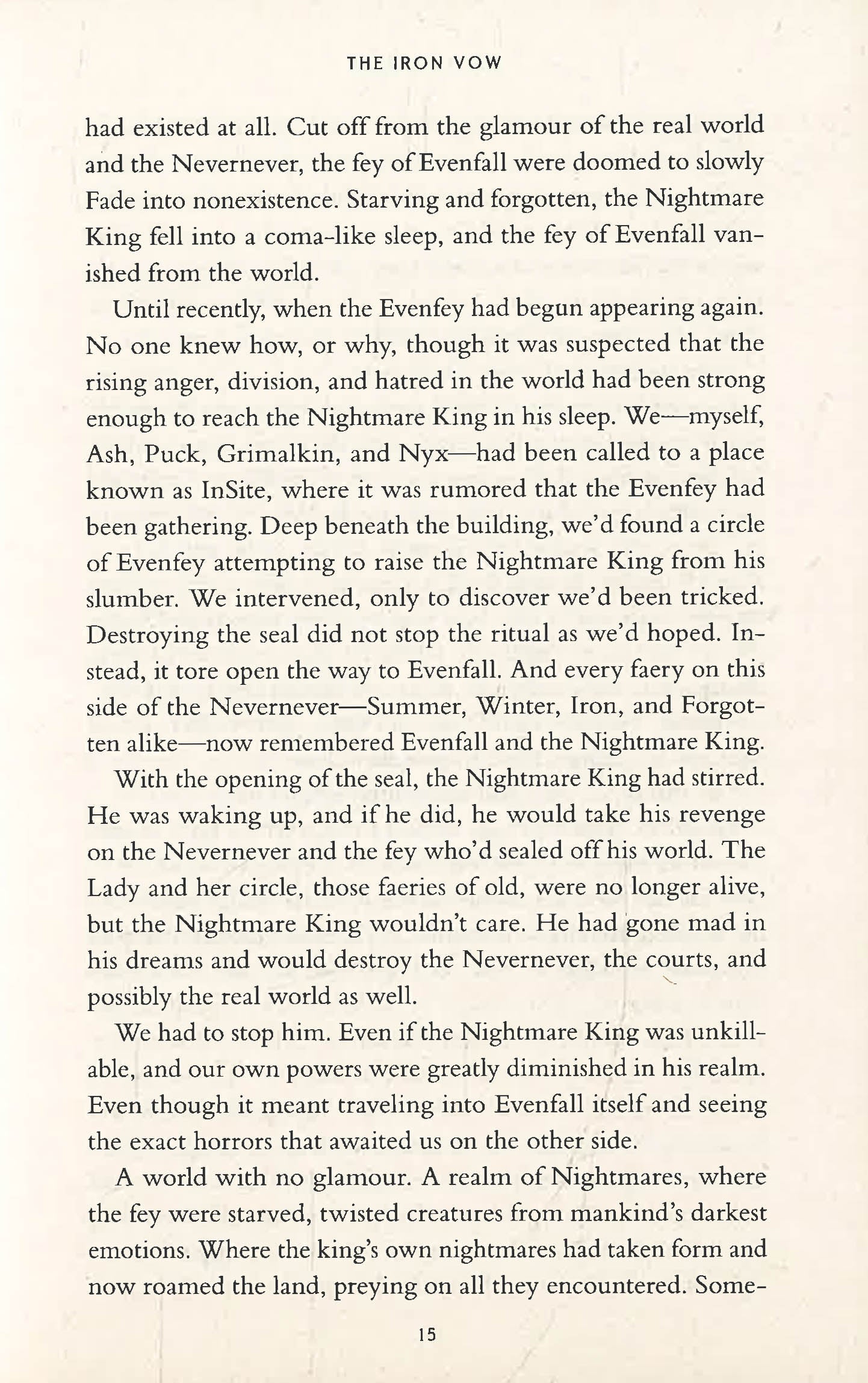 After leaping through the portal to Evenfall, Meghan and her companions find themselves in a terrifying new world where Nightmares roam and glamour is nearly nonexistent. As their magic wanes and the creatures of Evenfall rise against them, the race to find the Nightmare King grows ever more desperate. But what they discover will shake everything they thought they knew to the core.