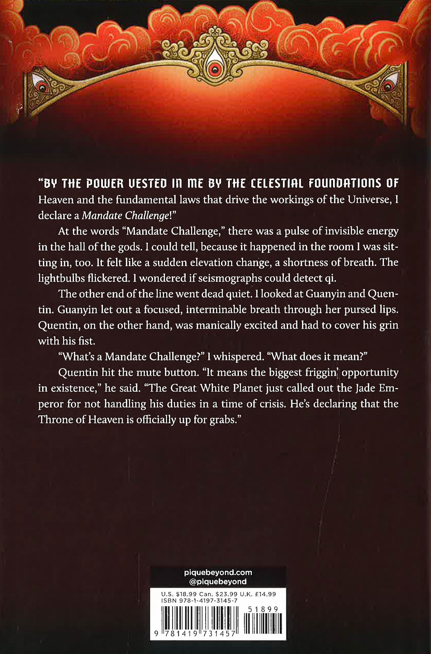 The fate of the heavens is at stake in this hilarious and highly-anticipated sequel to the The Epic Crush of Genie Lo Genie Lo thought she was busy protecting the Bay Area from demons. But now, as a Heaven- appointed Guardian, even the well-being of demons is her responsibility-and their numbers are multiplying. Guanyin and Quentin are doing their best to help; but what they really need is for the Jade Emperor to get off his butt and deal with the crisis. While he's AWOL, Genie nominates Guanyin to fill in his shoes, unaware that the role will go to the god who can defeat a mysterious threat to the supernatural order. Along with a few other contenders for the throne, including a former enemy, Genie and her friends embark on a Heavenly quest to an in-between world. But when faced with true danger, the group realizes that what will save the universe this time is sacrifice, not strength.