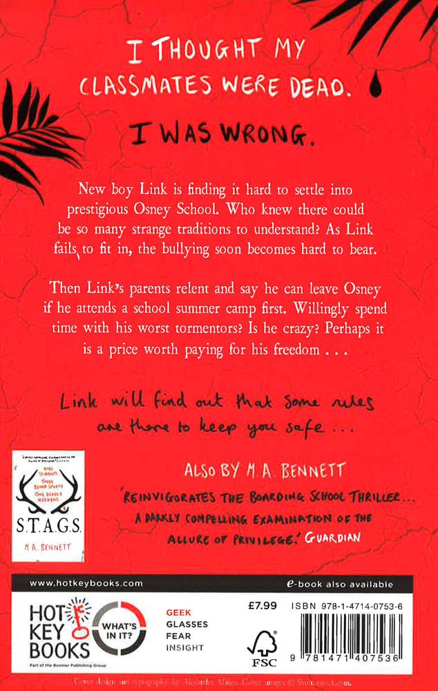 And what kind of school ranks its students by how fast they can run round the school quad - however ancient that quad may be? But when his parents say he can only leave Osney School - forever - if he goes on the trip, Link decides to endure it for the ultimate prize. Seven students. One plane crash. No rules. Link is a fish out of water. Newly arrived from America, he is finding it hard to settle into the venerable and prestigious Osney School. Who knew there could be so many strange traditions to understand? And what kind of school ranks its students by how fast they can run round the school quad - however ancient that quad may be? When Link runs the slowest time in years, he immediately becomes the butt of every school joke. And some students are determined to make his life more miserable than others . . . When a school summer trip is offered, Link can think of nothing worse than spending voluntary time with his worst tormentors. But when his parents say he can only leave Osney School - forever - if he goes on the trip, Link decides to endure it for the ultimate prize. But this particular trip will require a very special sort of endurance. The saying goes 'No man is an island' - but what if on that island is a group of teenagers, none of whom particularly like each other? When oppressive heat, hunger and thirst start to bite, everyone's true colours will be revealed. Let the battle commence . . .