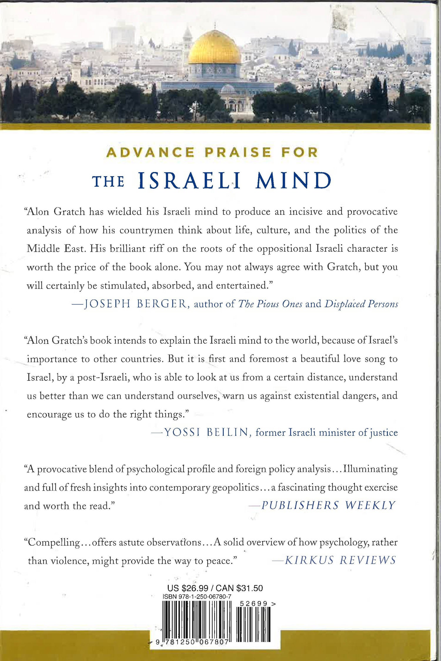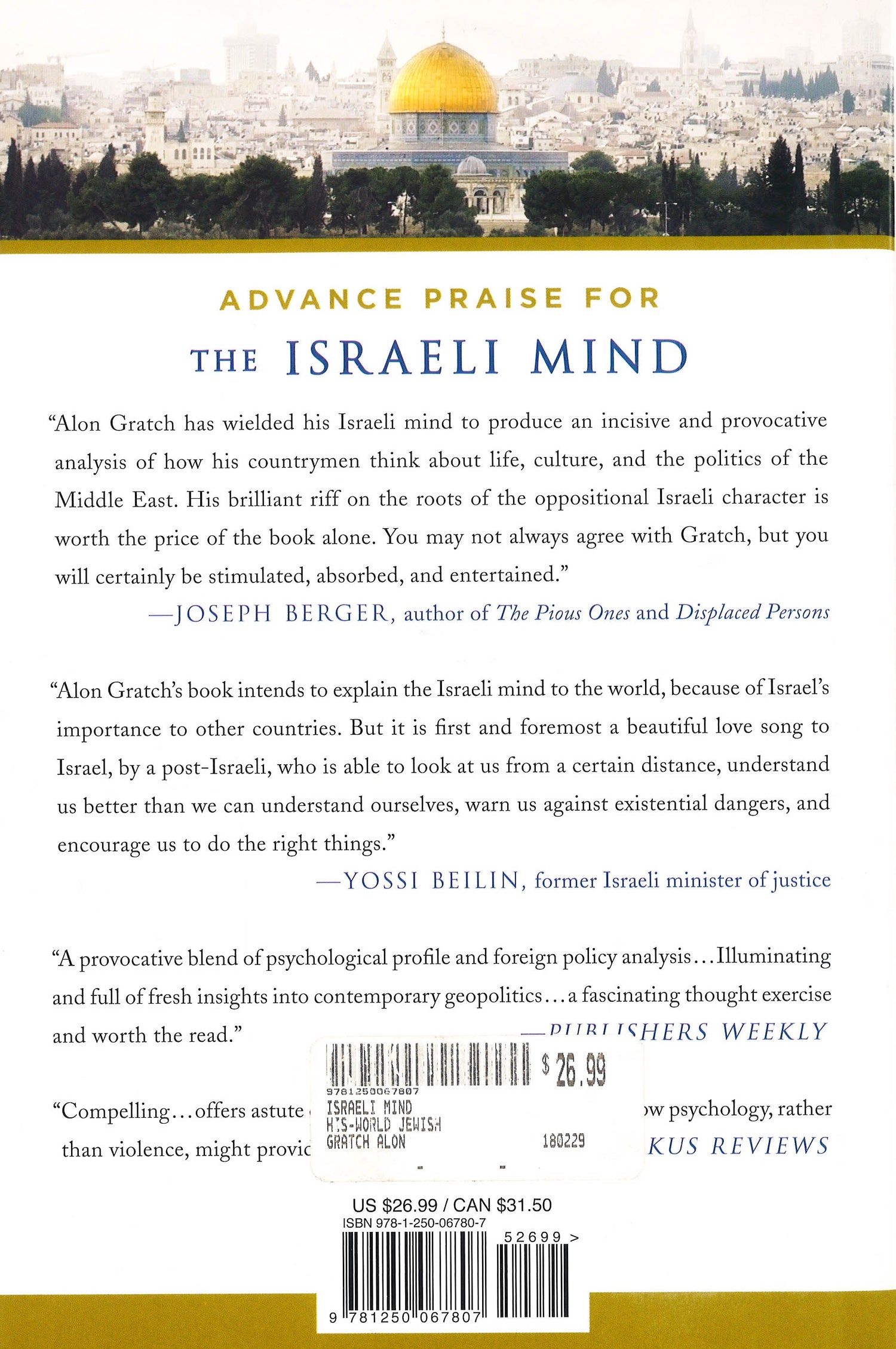 Drawing on a broad cultural and historical canvas, and weaving in the author's personal and professional experience, The Israeli Mind presents a compelling, if disturbing, portrait of the Israeli national character. Emerging from the depth of Jewish history and the drama of the Zionist rebellion against it, lsraelis are struggling to forge an identity. They are grand and grandiose, visionary and delusional, generous and self-centered. Deeply caring because of the history of Jewish victimization, they also demonstrate a shocking indifference to the sufferings of others. Saying no is their first, second and third line of defense, even as they are totally capable of complete and sudden capitulation. They are willing to sacrifice themselves for the collective but also to sacrifice that very collective for a higher, and likely unattainable ideal. Dr. Alon Gratch draws a vivid, provocative portrait of the conflicts embedded in the Israeli mind. Annihilation anxiety, narcissism, a failure to fully process the Holocaust, hyper-masculinity, post-traumatic stress, and an often unexamined narrative of self-sacrifice, all clash with the nation's aspiration for normalcy or even greatness.Failure to resolve these conflicts, Gratch argues, will threaten Israel's very existence and the stability of the Western world.