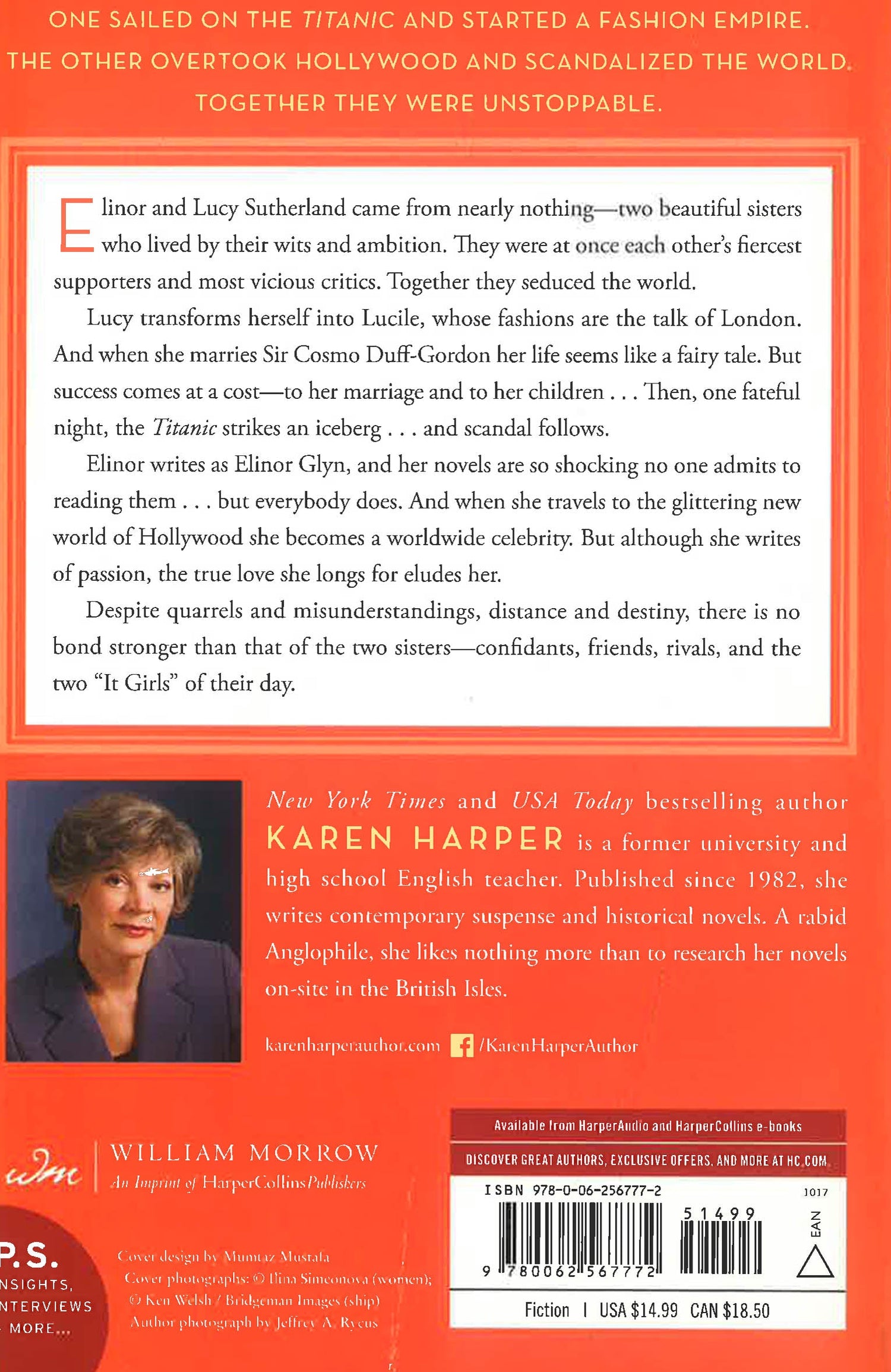Lucy transformed herself into Lucile, the daring fashion designer who revolutionized the industry with her flirtatious gowns and brazen self-promotion. And when she married Sir Cosmo Duff-Gordon her life seemed to be a fairy tale. But success came at many costs—to her marriage and to her children . . . and then came the fateful night of April 14, 1912 and the scandal that followed.