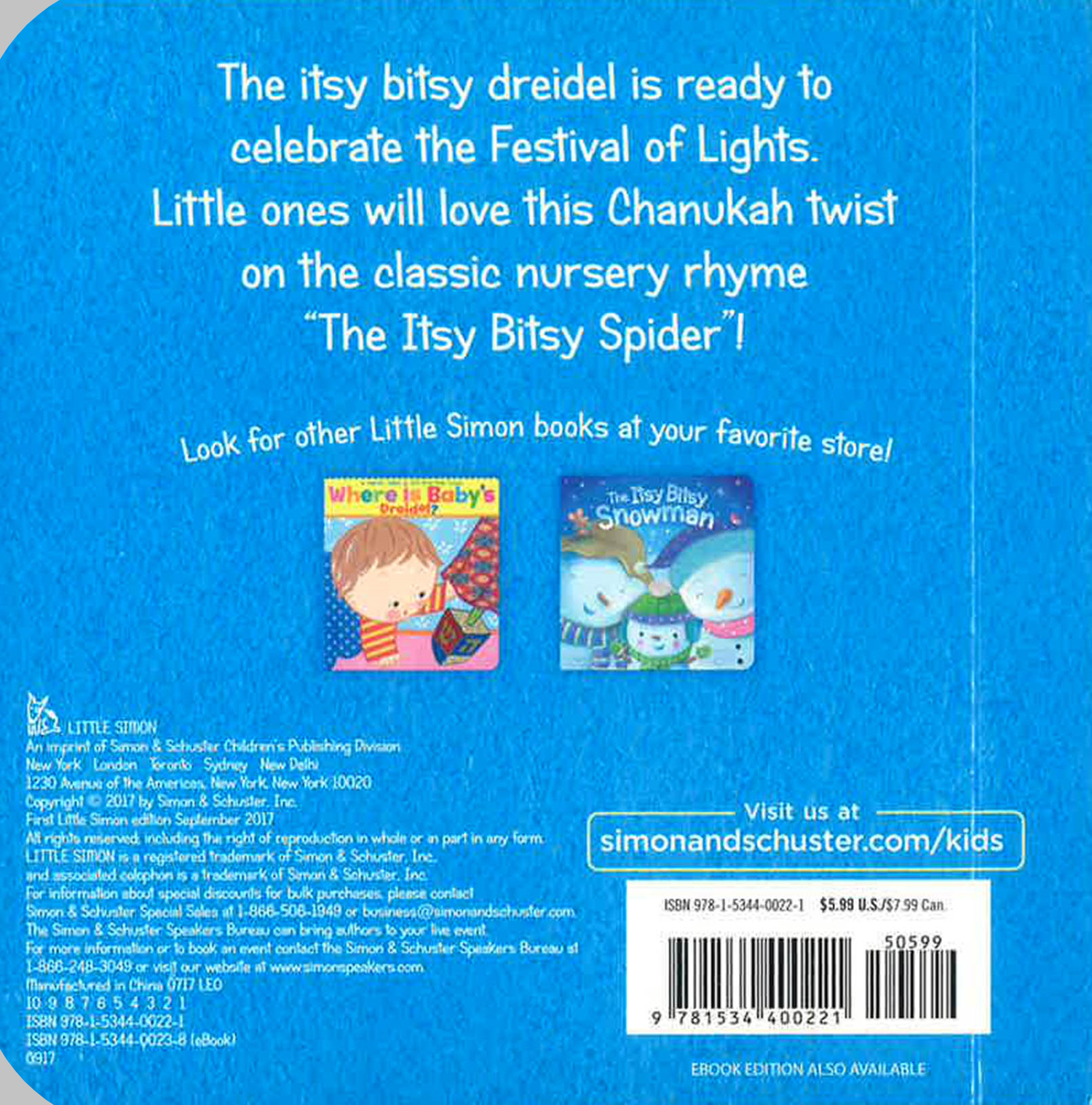 A fun and playful Chanukah twist on the popular nursery rhyme “The Itsy Bitsy Spider”!