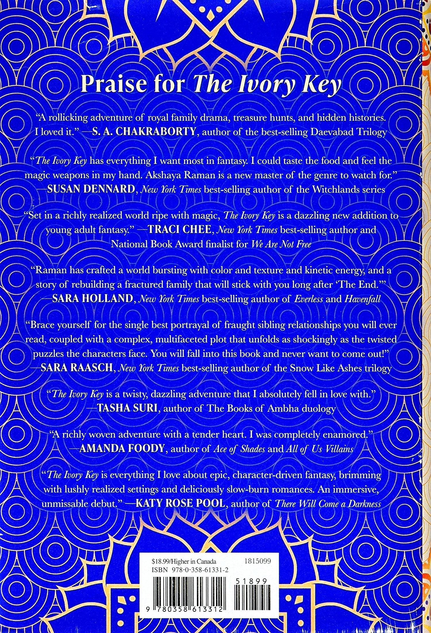 Vira, Ronak, Kaleb, and Riya may be siblings, but they've never been close or even liked each other that much. Torn apart by the different paths their lives have taken, only one thing can bring them back together: the search for the Ivory Key, a thing of legend that will lead the way to a new source of magic. Magic is Ashoka's biggest export and the only thing standing between them and war with the neighboring kingdoms—as long as their enemies don't find out that the magic mines are nearly depleted.The siblings all have something to gain from finding the Ivory Key, and even more to lose if they don't. For Vira, the Ivory Key is the only way to live up to the legacy of her mother, the beloved former maharani. Ronak plans to get out of his impending political marriage by selling the Ivory Key to the highest bidder. Kaleb has been falsely accused of assassinating the former maharani, and this is the only way to clear his name. And Riya needs to prove her loyalty to the Ravens, the group of rebels that wants to take control away from the maharani and give it to the people. With each sibling harboring secrets and conflicting agendas, figuring out a way to work together may be the most difficult task of all. And in a quest this dangerous, working together is the only way to survive.