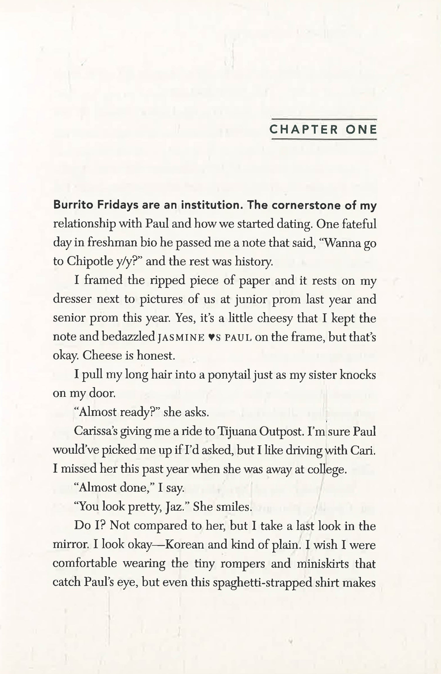 Jasmine Yap's life is great. Well, it's okay. She's about to move in with her long-time boyfriend, Paul, before starting a nursing program at community college--all of which she mostly wants. But her stable world is turned upside down when she catches Paul cheating. To her giant, overprotective family, Paul's loss is their golden ticket to showing Jasmine that she deserves much more. The only problem is, Jasmine refuses to meet anyone new.