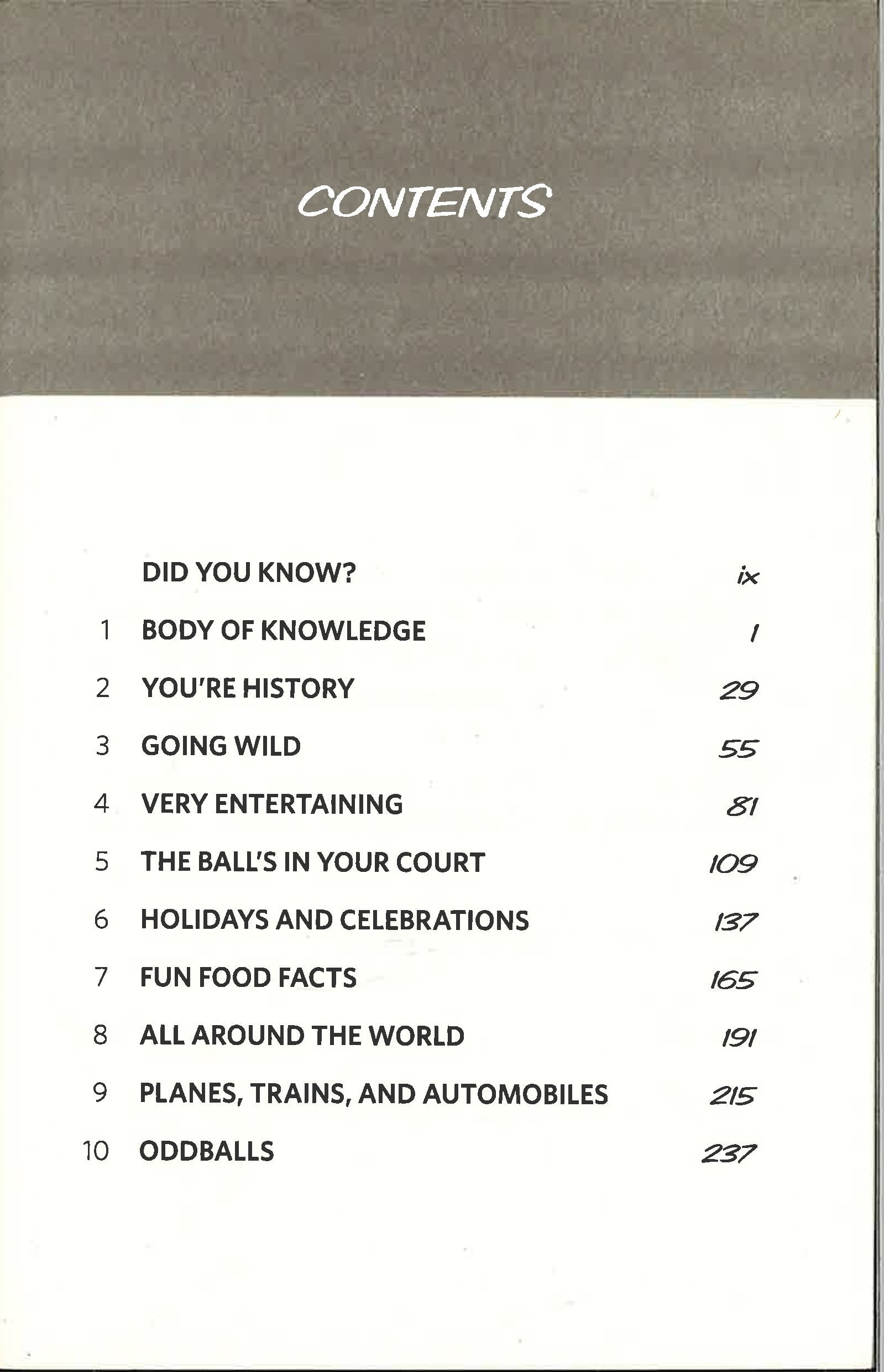 Learning can be hilarious . . . when the facts are as zany as the trivia in this book. It will make you shake your head and even shake with laughter as you discover goofy but true bits of knowledge.