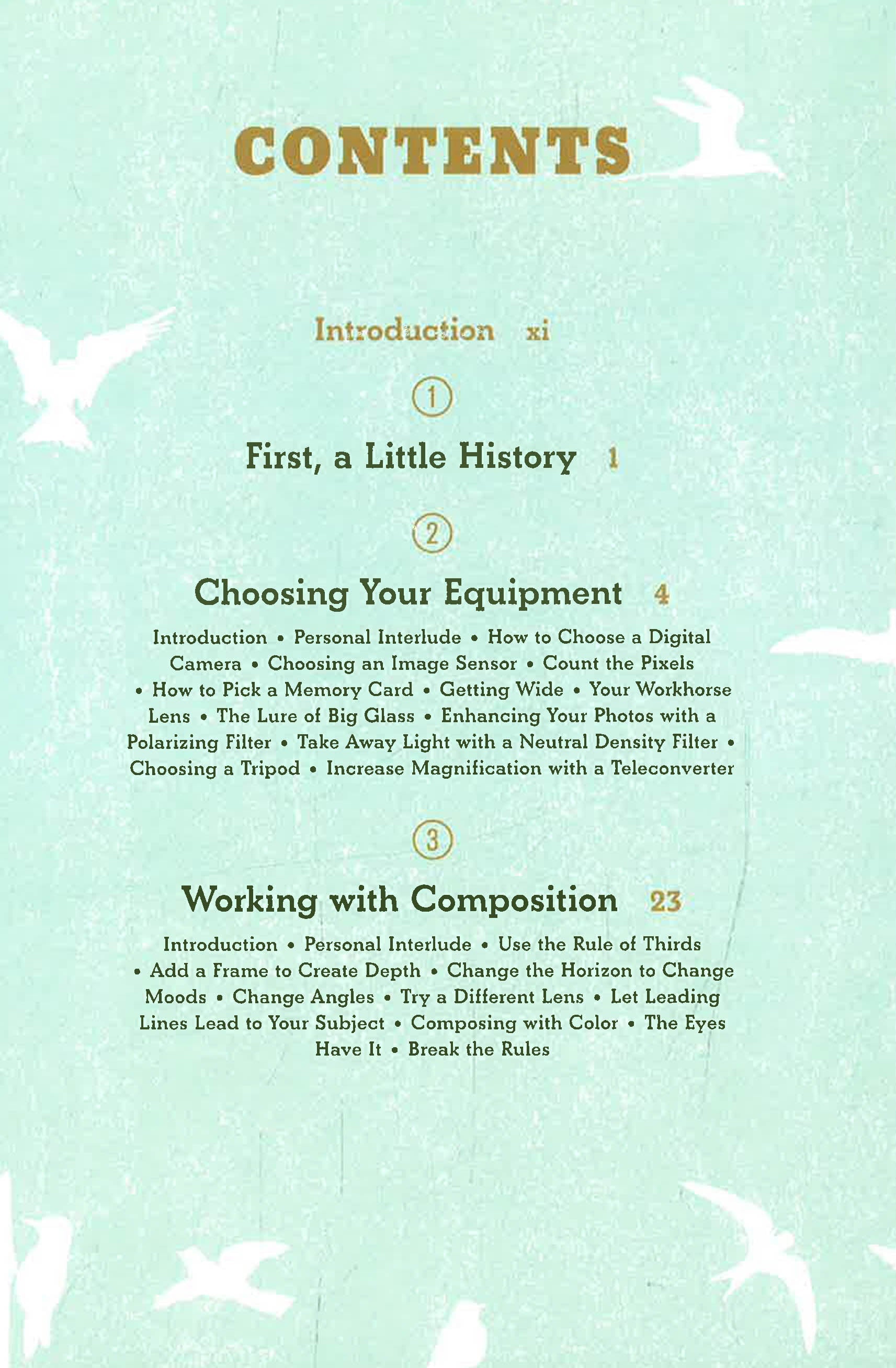 Broken into eleven chapters, this book combines technical know-how and real-life examples to offer tips that cover all the basics of photography. Each tip is carefully explained, and every chapter features stunning photos by the author to demonstrate particular methods. The Joy of Nature Photography will help anyone hone their skills as an outdoor photographer, and it provides experienced wisdom on topics.