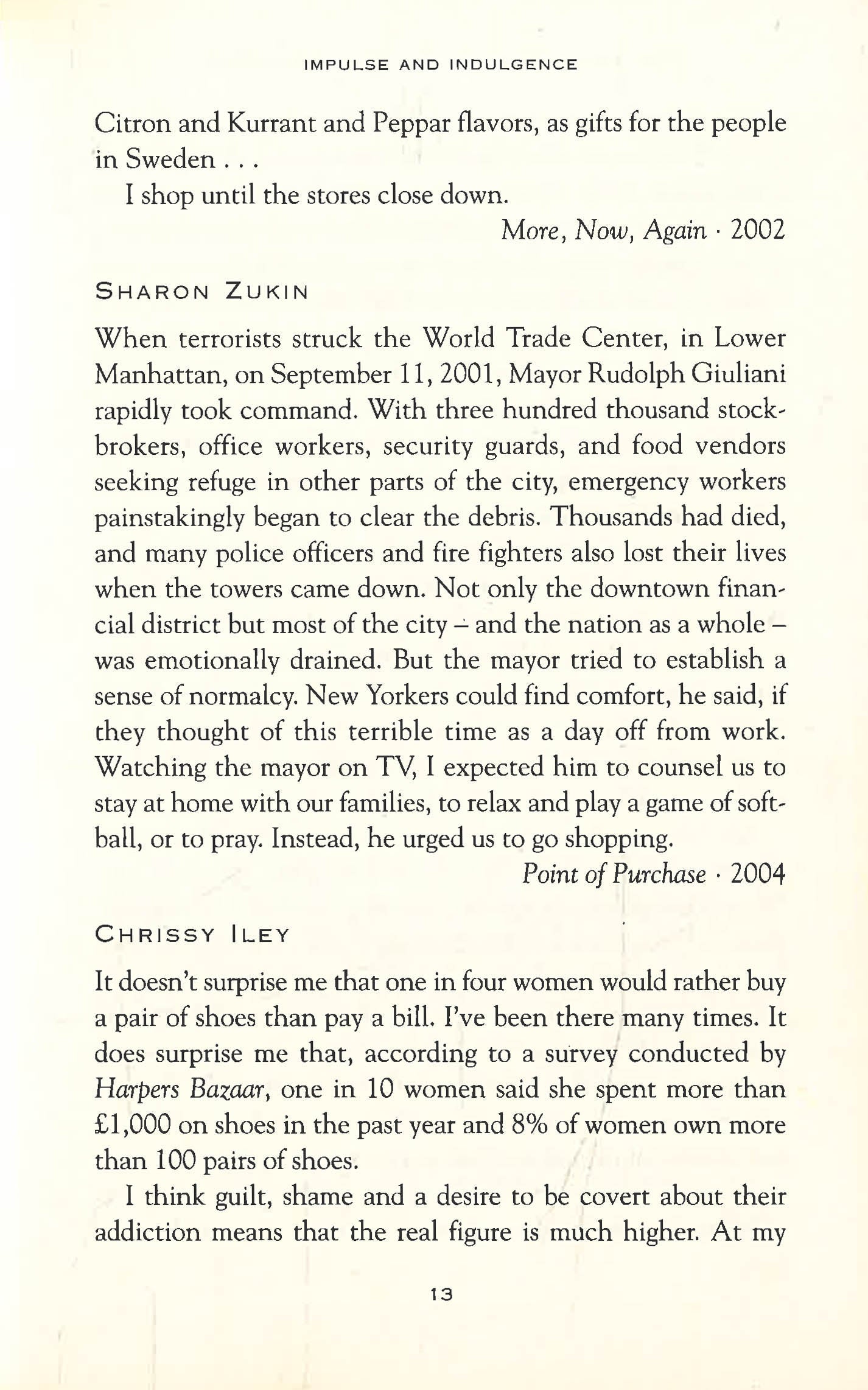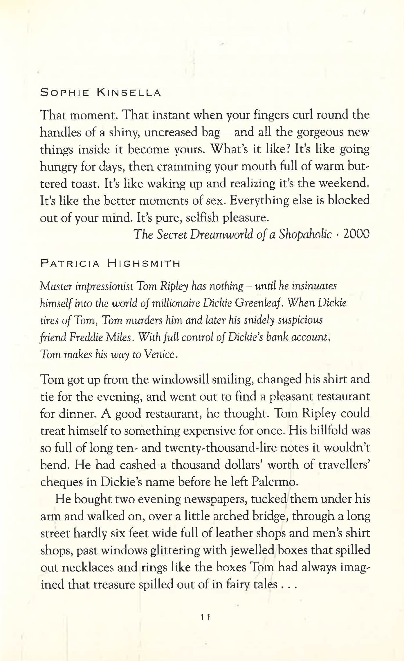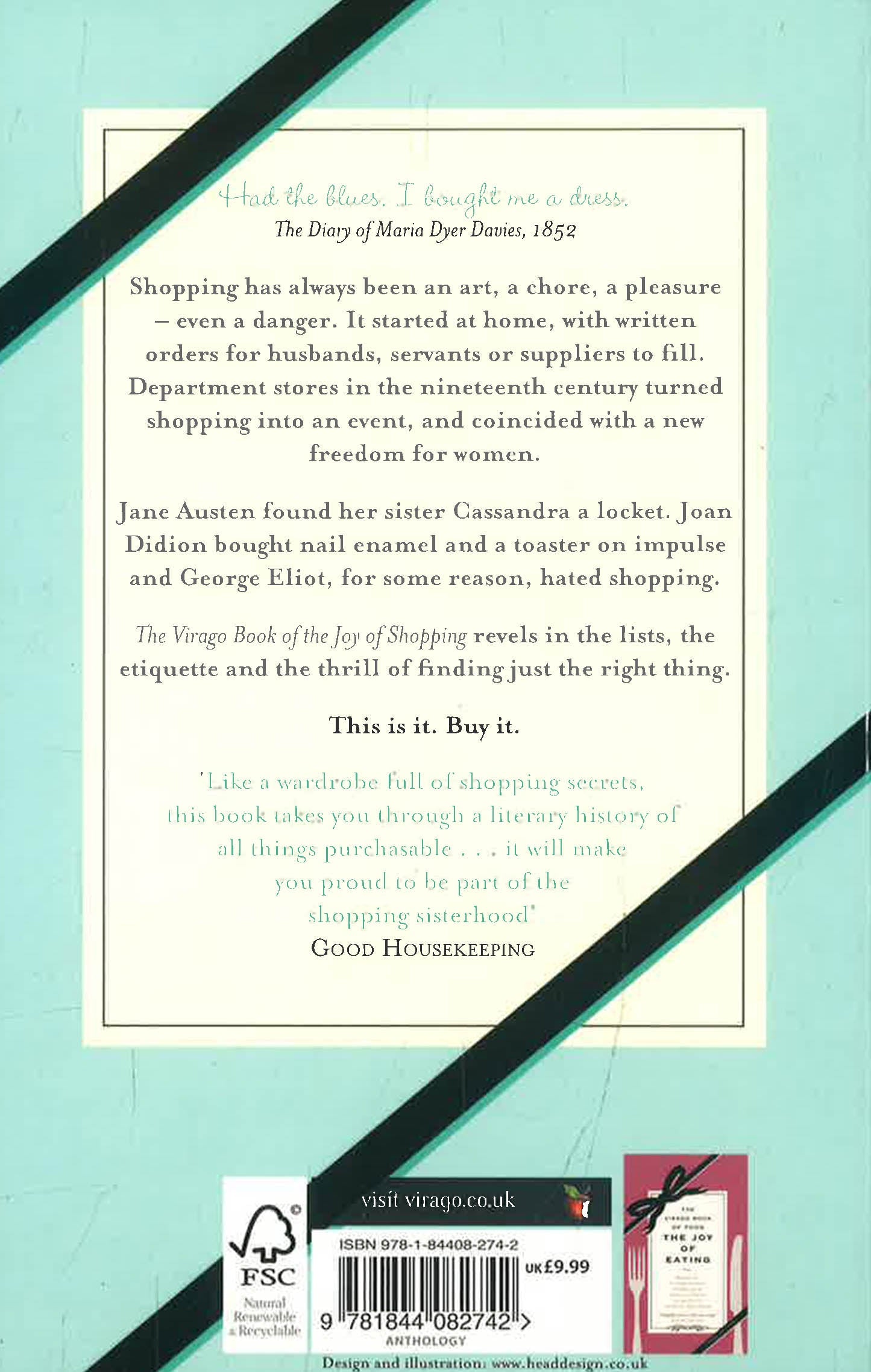 Jane Austen found her sister Cassandra a locket. Joan Didion bought nail enamel and a toaster on impulse. Karyn Bosnak charged $20,000 on credit cards, and Elizabeth Wurtzel got caught shoplifting. George Eliot, for some reason, hated shopping. Jane Eyre cringes at Mr Rochester's pre-wedding excess, while Undine Spragg's spending drives her husband to despair. The Girl with a Pearl Earring turns up her nose at some stale meat, Tom Ripley lusts after Venetian leather, and Mrs. Dalloway chooses flowers on Bond Street. As people began to shop more, novelists imagined them doing it. The darker side of shopping is here in the letters, diaries, and memoirs of those who remember blackmarkets and rations. There are even records from the England's central criminal court of audacious and desperate five-finger discounts, and a recent account of brawling at IKEA. The Virago Book of Shopping revels in the lists, the etiquette, and the thrills of finding just the right thing.