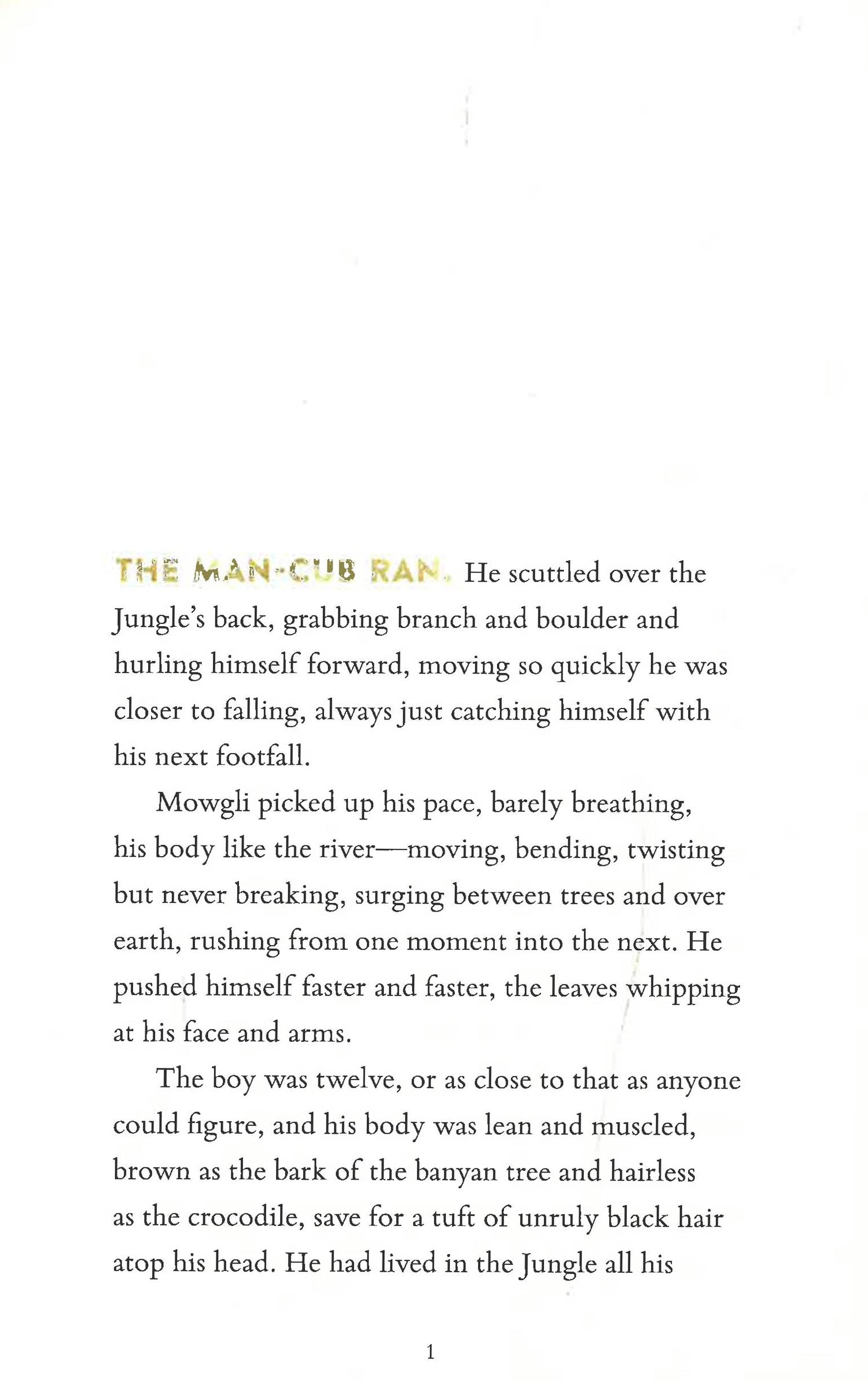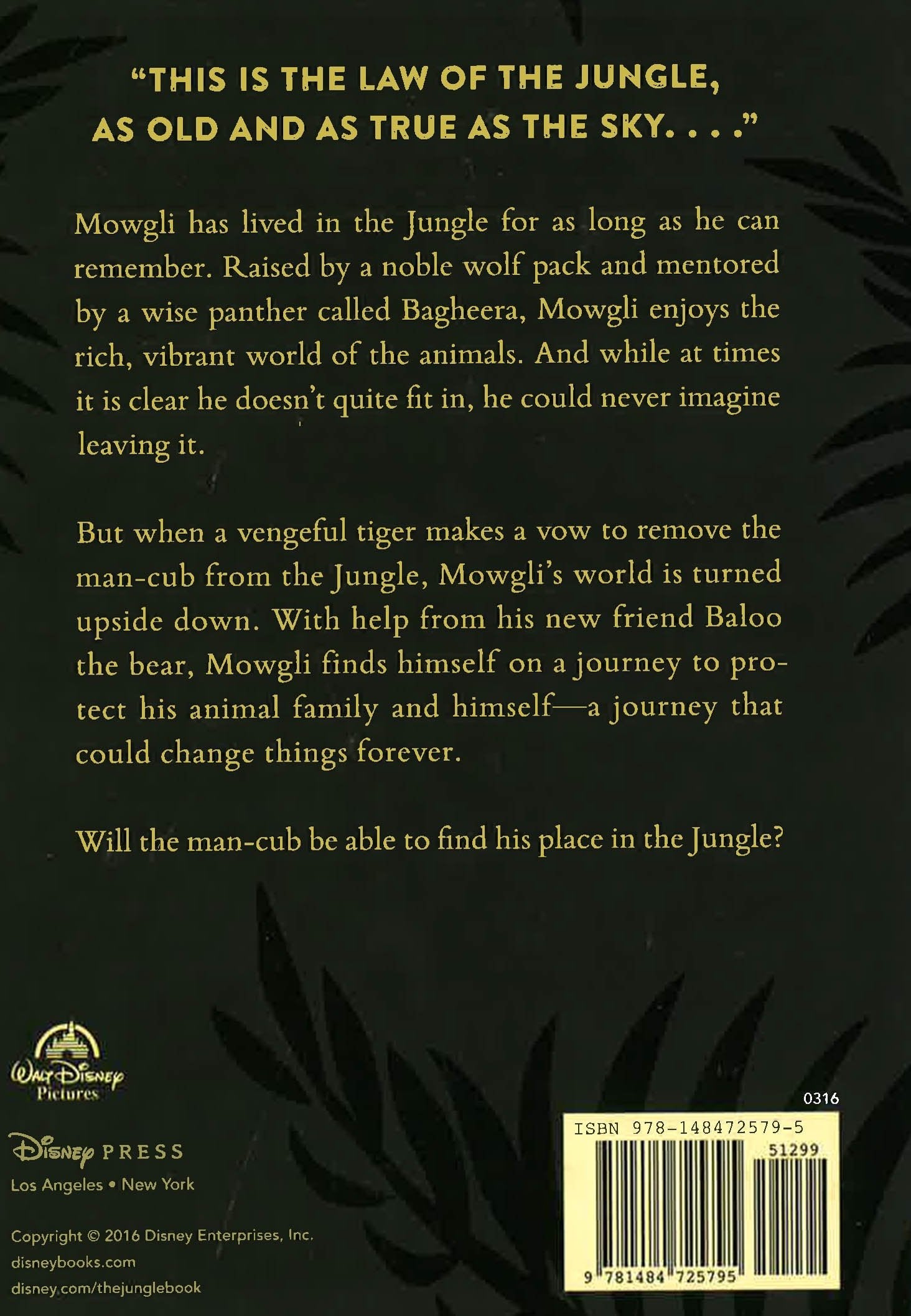 Mowgli has lived in the Jungle for as long as he can remember. Raised by a noble wolf pack and mentored by a wise panther called Bagheera, Mowgli enjoys the rich, vibrant world of the animals. And while at times it is clear he doesn't quite fit in, he could never imagine leaving it.But when a vengeful tiger makes a vow to remove the man-cub from the Jungle, Mowgli's world is turned upside down. With help from his new friend Baloo the bear, Mowgli finds himself on a journey to protect his wolf family and himself--a journey that could change things forever.Will the man-cub be able to find his place in the Jungle?