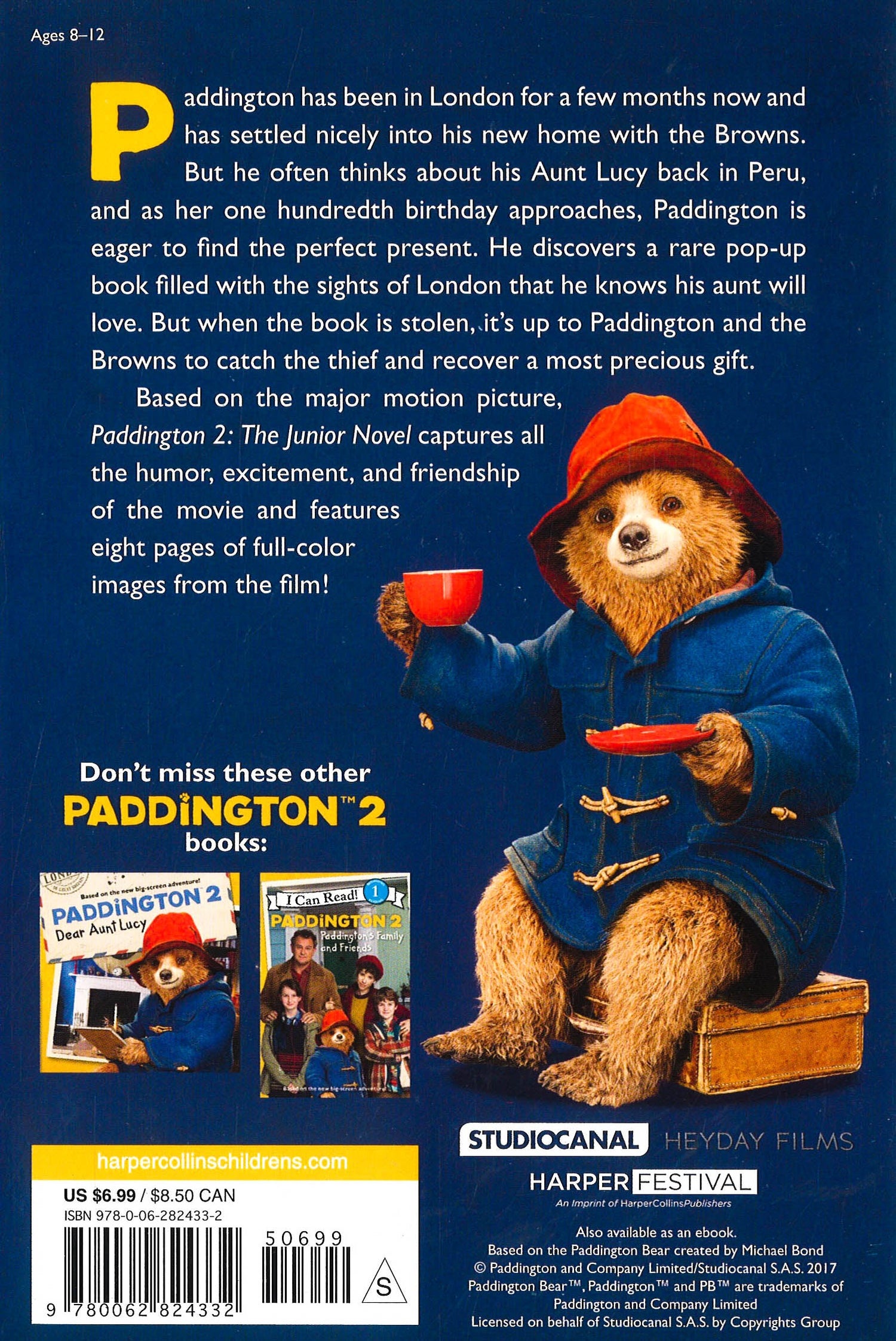 Paddington has been in London for a few months now and has settled into his new home with the Browns. But he often thinks about his aunt Lucy back in Peru, and as her 100th birthday approaches, Paddington is eager to find the perfect present. He finds a one-of-a-kind book that he knows his aunt will love. But when the book is stolen, it’s up to Paddington and the Browns to catch the thief and recover a most precious gift.Based on the major motion picture Paddington 2, this paperback junior novel features eight pages of full-color images from the film!