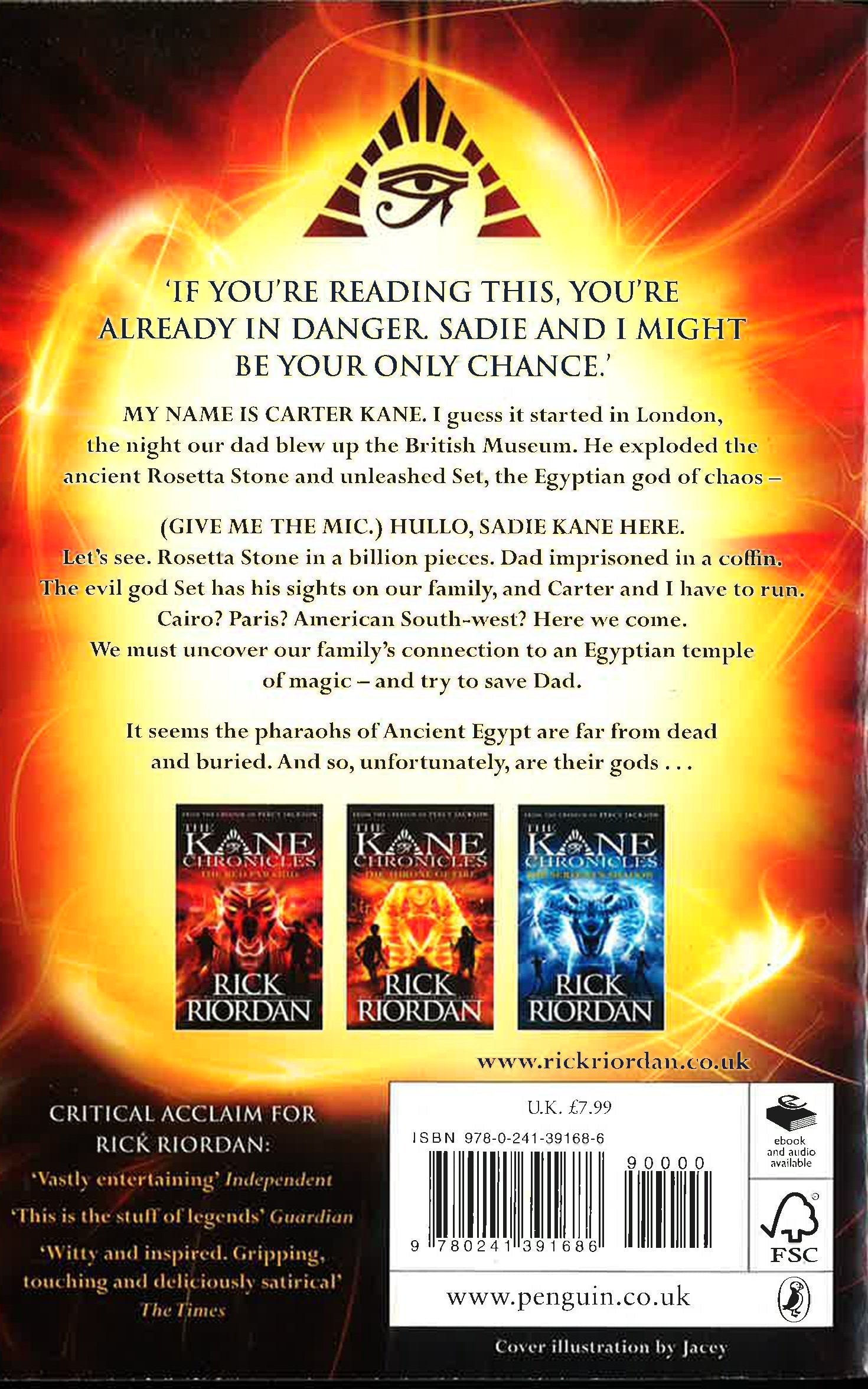 Set imprisons Dr Kane in a golden coffin and Carter and Sadie must run for their lives. To save their dad, they embark on a terrifying quest from Cairo to Paris to the American South-west and discover the truth about their family's connection to the House of Life: an Egyptian temple of magic that has existed for thousands of years.