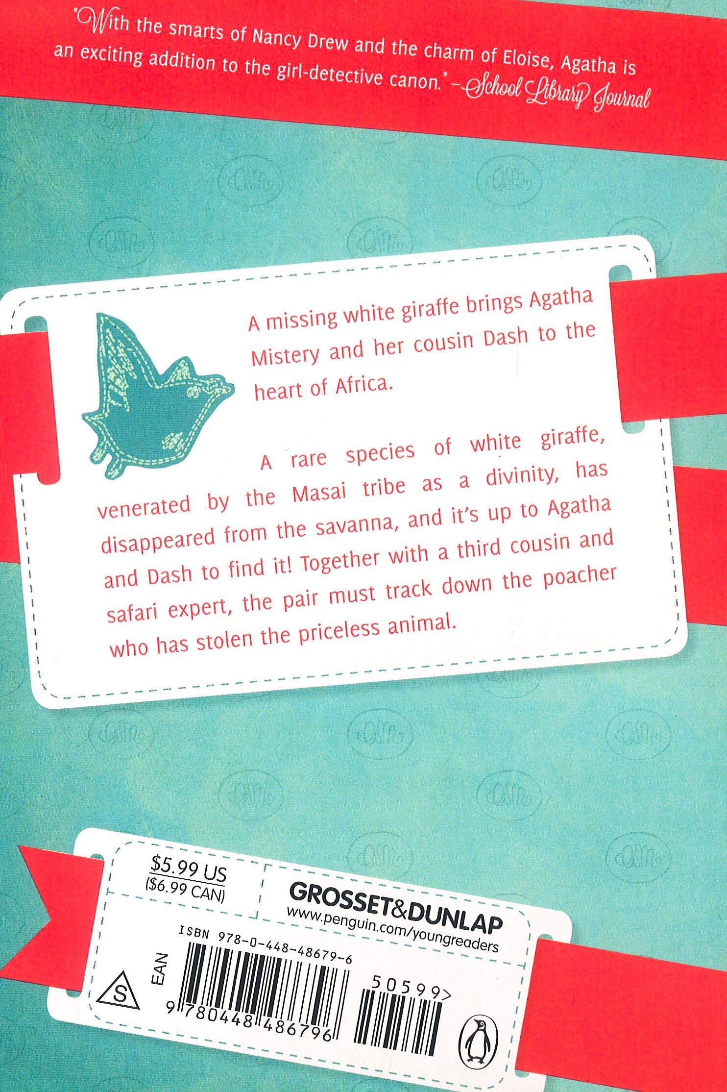 With the smarts of Nancy Drew and the charm of Eloise, Agatha is an exciting addition to the girl-detective canon." --School Library Journal A rare species of white giraffe, worshipped by the Masai tribe, has disappeared from the savannah. So Agatha and her cousin Dash head to Africa on their next adventure to help solve the mystery. There, they join forces with a third cousin--a safari expert--to track down the poacher who has stolen the priceless animal. * This book may have reminder mark*