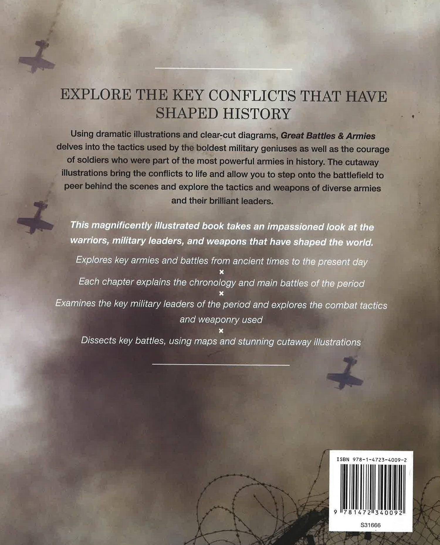Explores the key armies and battles from ancient times to the present day. Using beautiful photographs and cutaway illustrations, Great Battles & Armies delves into the tactics put forward by the boldest military geniuses as well as the courage of soldiers who formed the most powerful armies in history. The cutaway illustrations bring the conflicts to life and allow you to step onto the battlefield to peer behind the scenes and explore the tactics and weapons of diverse armies and their brilliant leaders.