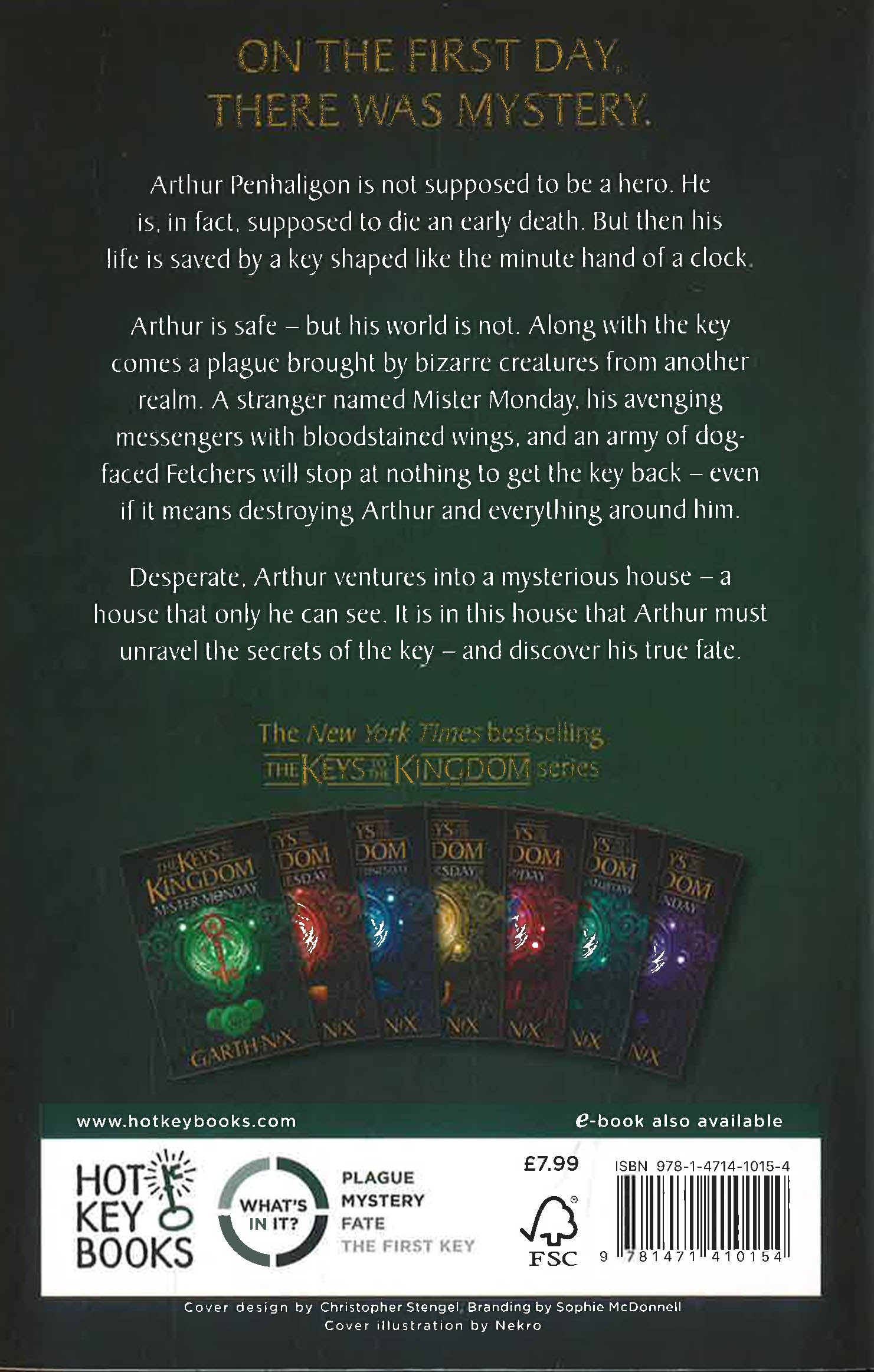 Out-of-this-world magical adventure series for teens from the award-winning, New York Times bestselling author of Sabriel and the Old Kingdom series Seven days. Seven keys. One very unlikely hero. Arthur Penhaligon is a normal teenage boy, trying to fit in at school. But when he suffers a serious asthma attack, his life is unexpectedly saved by two strange characters who appear out of nowhere - and a key shaped like the minute hand of a clock. Arthur's life may have been saved, but his world is in danger. An incurable epidemic is spreading throughout the country, and his foster mother, a scientist, is desperately trying to help find the cure. And it is not long before Arthur realises that a chilling person named Mister Monday will stop at nothing to get the key back from Arthur... Arthur will need to enter the mysterious house that has appeared in town - a house that only he can see. Maybe there he can unravel the secrets of the key - and at the same time find the cure to help the epidemic in his own world...