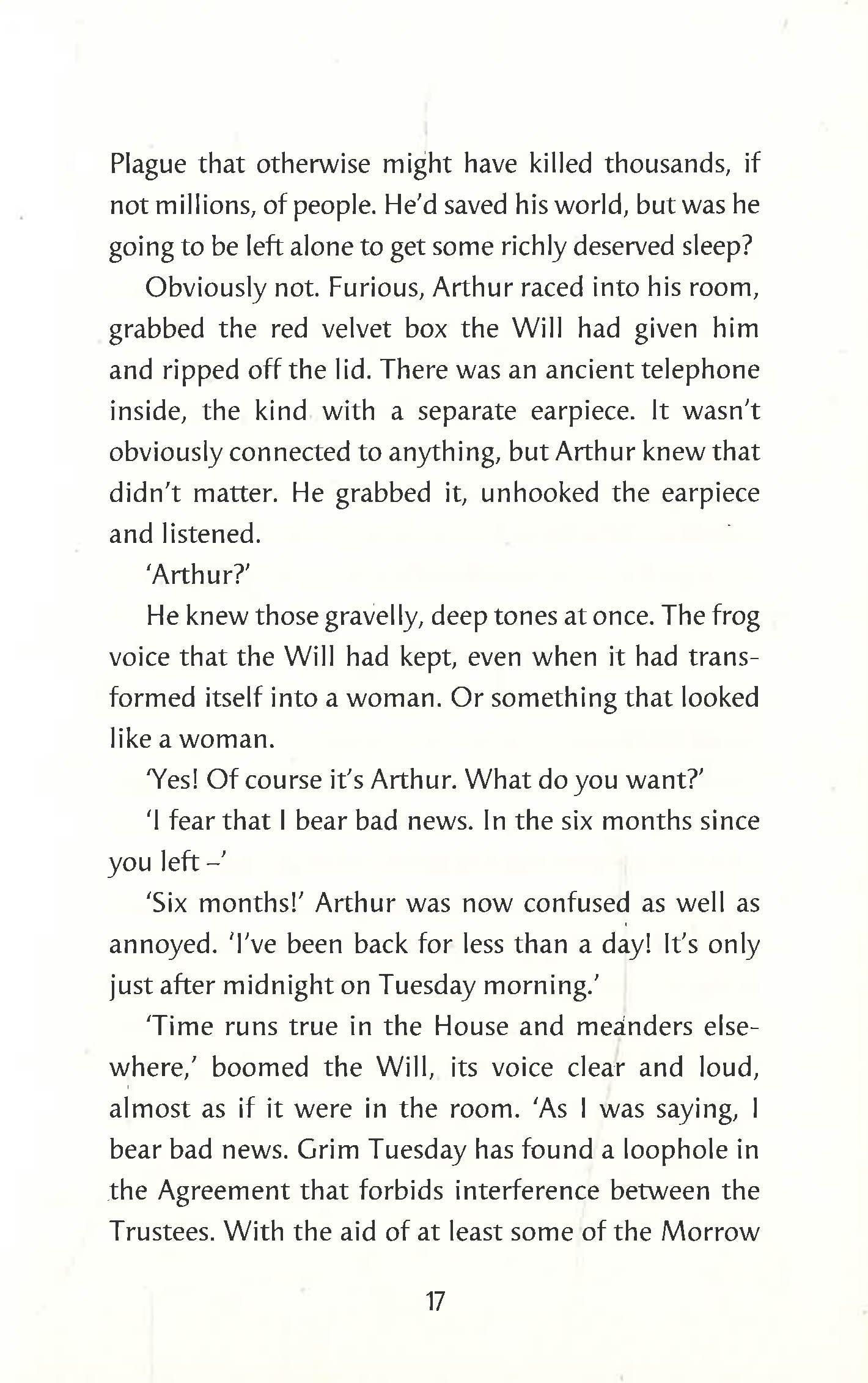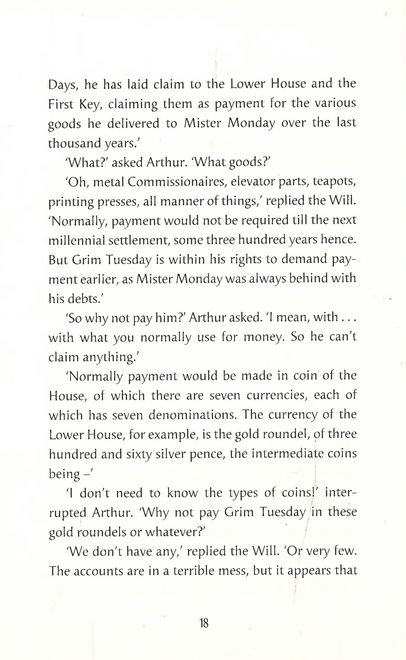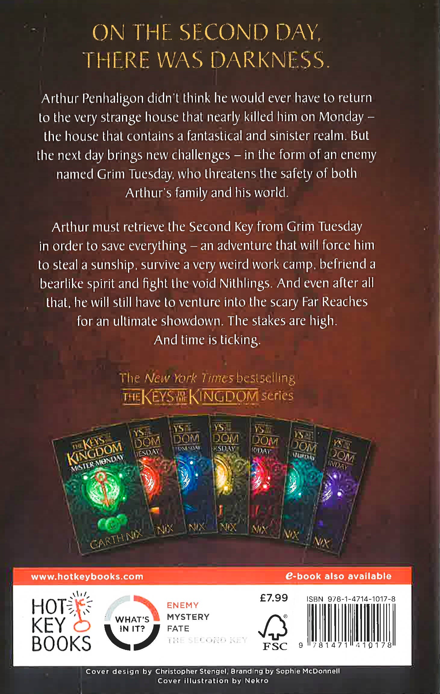 Out-of-this-world magical adventure series for teens from the award-winning, New York Times bestselling author of Sabriel and the Old Kingdom series. Seven days. Seven keys. One very unlikely hero. Arthur must retrieve the Second Key from Grim Tuesday in order to save everything - an adventure that will force him to steal a sunship, survive a very weird work camp, befriend a bearlike spirit, and fight the void Nithlings. And even after all that, he will still have to venture into the scary Far Reaches for an ultimate showdown. The stakes are high. And time is ticking.