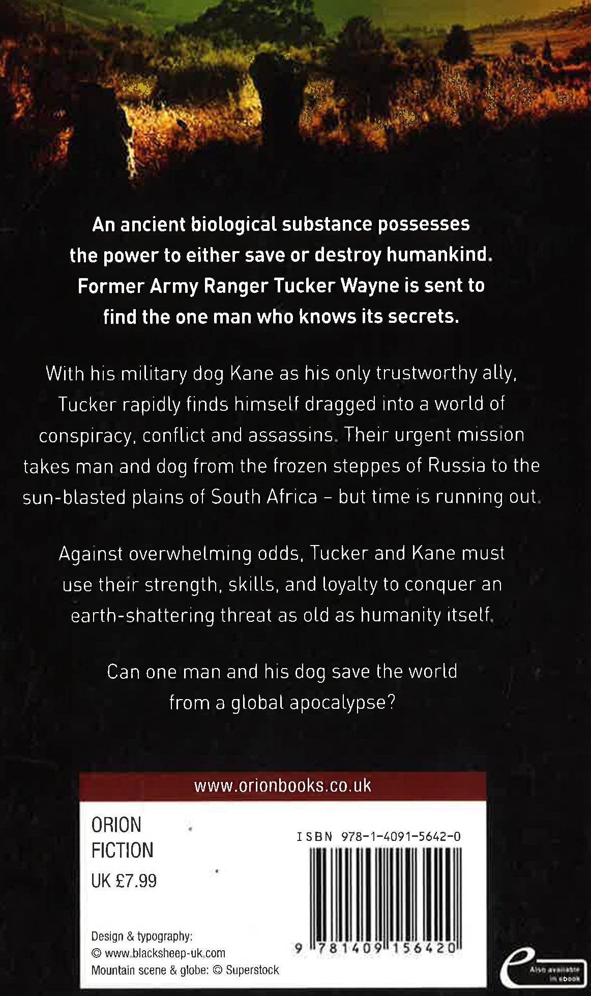 Meet the newest recruits to the expanding SIGMA Force universe - former Army Ranger Tucker Wayne and his stalwart companion, Kane, a military working dog with exceptional abilities. The mission seems simple enough: extract a pharmaceutical magnate from Russian soil, a volatile man who holds the secret to a deadly bio-weapon. But nothing is as it appears to be. A conspiracy of world-shattering scope unravels as Tucker and Kane struggle to keep one move ahead of their deadly enemies. From the frozen steppes of Russia to the sun-blasted mountains of South Africa and Namibia, a biological threat millions of years in the making strikes out at the heart of America. All that stands in the way of a global apocalypse is one man and his dog. But can even Tucker and Kane thwart an ecological menace from the ancient past to save the world's future?