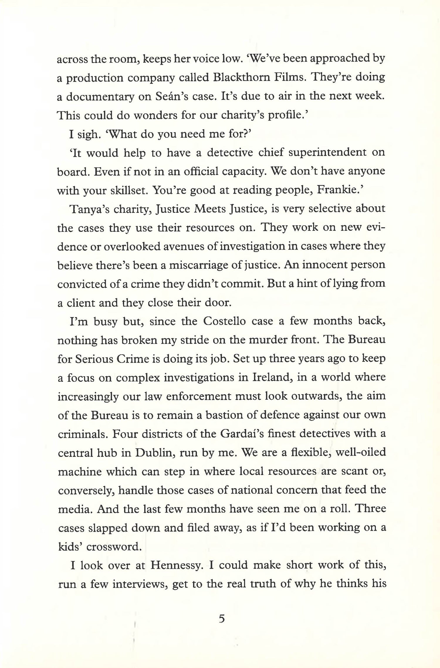 Detective Chief Superintendent Frankie Sheehan does not wish to linger on the grisly scene before her eyes. Two mutilated corpses. In a church. In Clontarf. Her profiling background screams one fact: this is just the beginning of a sickening message. Meanwhile, a 17-year-old case is playing out on a TV documentary, the convicted professing his innocence and historical police errors being exposed daily in the media. Frankie's superior, commissioner Donna Hegarty, makes no bones about who she expects to clean things up - both in terms of past mishandlings and the present murders. But not everyone working the cases wants the truth to come out. And the corridors of power have their own vested interest. Soon Frankie pinpoints just what is making her so nervous: the fact that anyone could be the next victim when justice is the killer. THE KILLER IN ME is a fast-paced thriller in which lies are safer that the truth, the past is never far from the present, and the ability to kill could well, it seems, live in everyone.