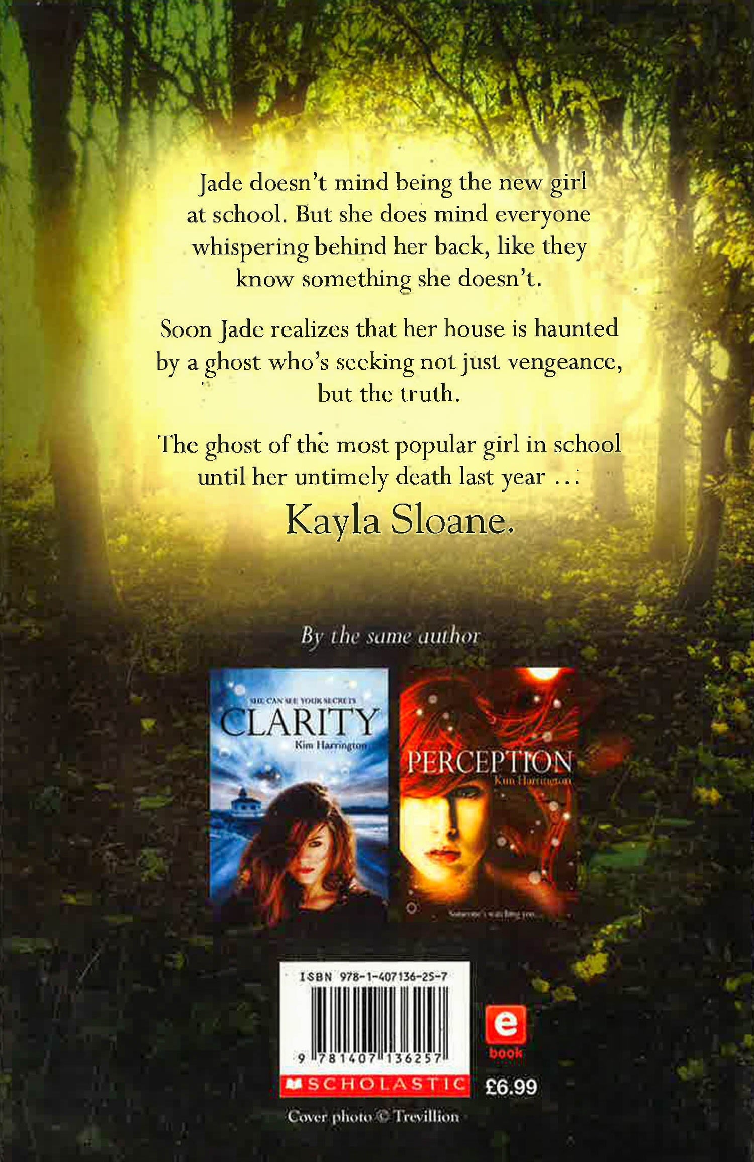 A new thrilling paranormal murder mystery from the author of CLARITY (9781407130859) and PERCEPTION (9781407130866) Jade loves her new house. She doesn't even mind being the new girl at school: it's a fresh start, and there's that one guy with the dreamy blue eyes. . . But then things begin happening. Strange, otherworldly things. And kids at school whisper behind Jade's back, like they know something she doesn't. Soon Jade must face that her perfect house is haunted. Haunted by a ghost who's seeking not just vengeance, but the truth. The ghost of the girl who ruled Jade's school until her untimely death last year. As Jade investigates the mystery, she discovers that her new friends in town have more than a few deep, dark secrets. But is one of them a murderer?