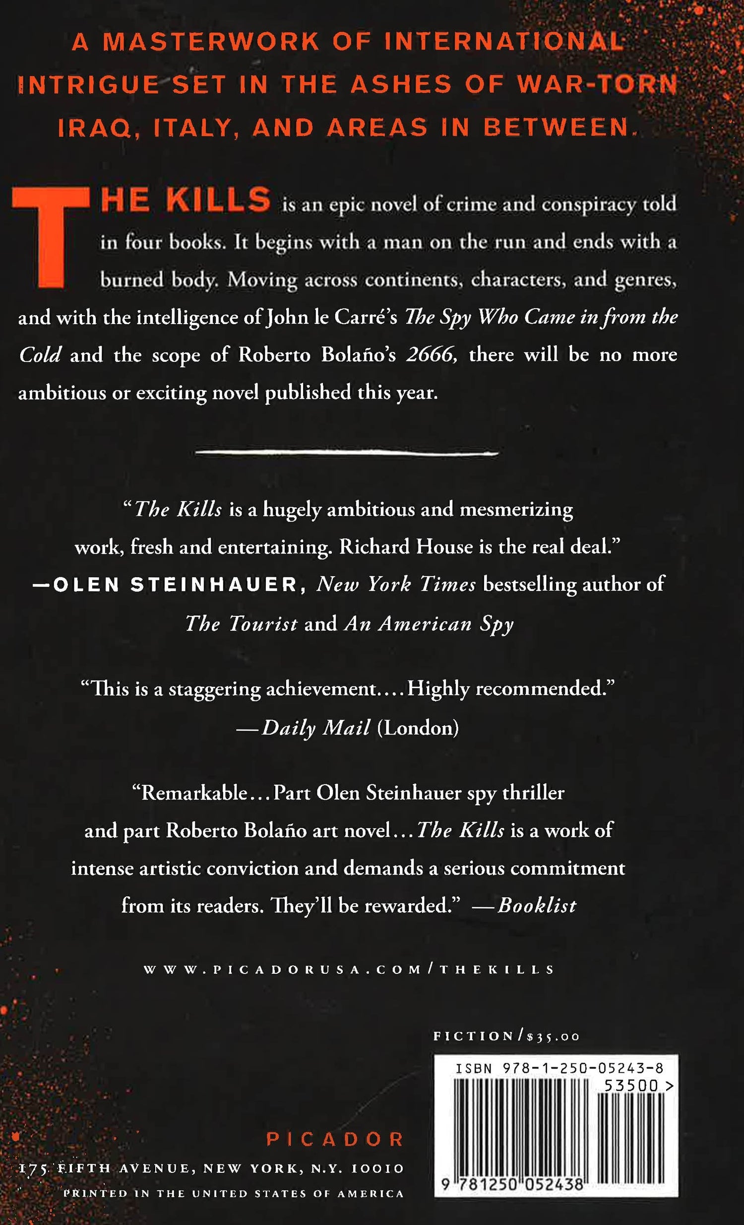 A MASTERWORK OF INTERNATIONAL INTRIGUE SET IN THE ASHES OF WAR-TORN IRAQ, ITALY, AND AREAS IN BETWEEN. The Kills is an epic novel of crime and conspiracy told in four books. It begins with a man on the run and ends with a burned body. Moving across continents, characters, and genres, there will be no more ambitious or exciting novel published this year.