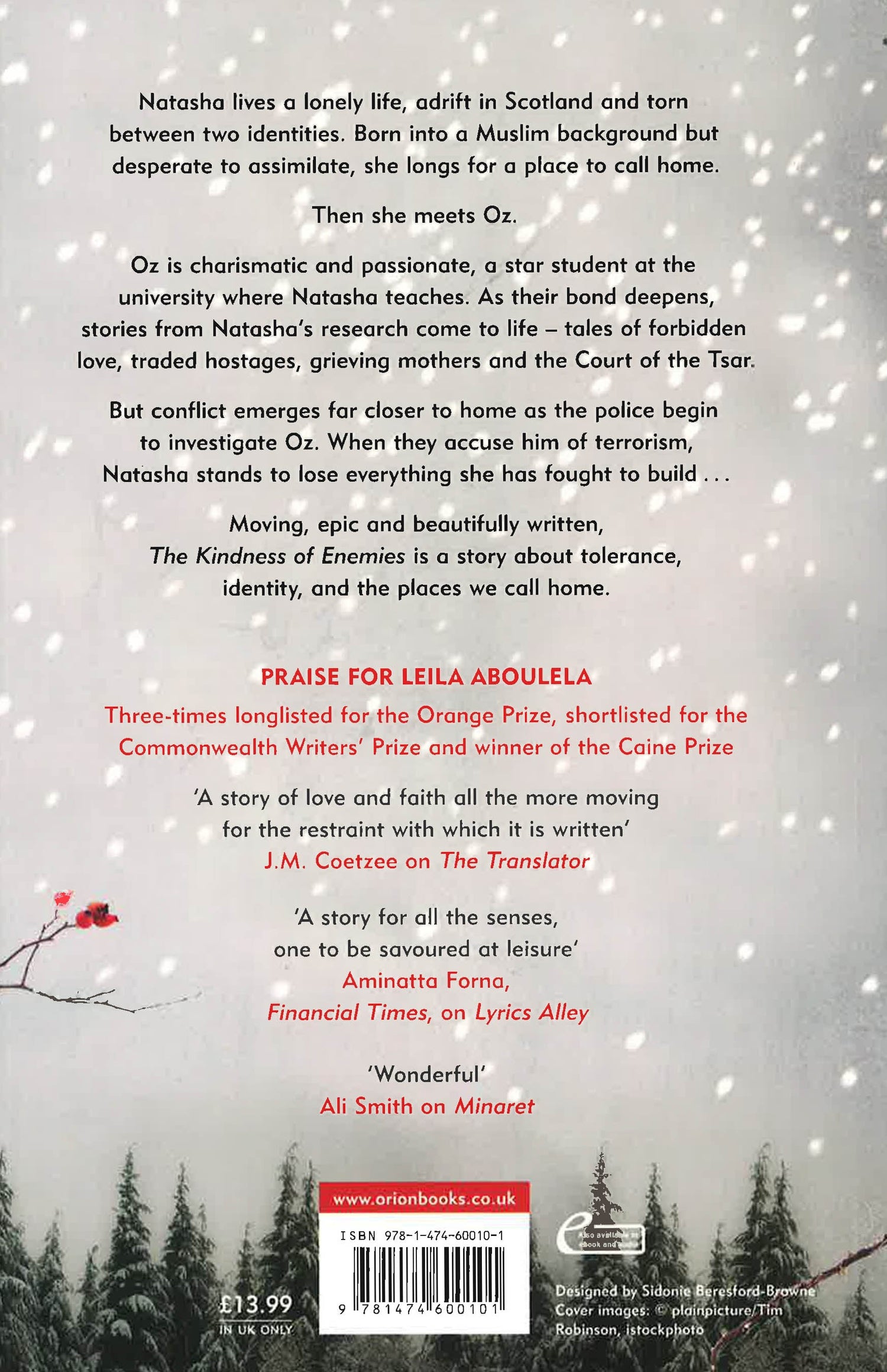 Natasha lives a lonely life, adrift in Scotland and torn between two identities. Born into a Muslim background but desperate to assimilate, she longs for a place to call home. Then she meets Oz. Oz is charismatic and passionate, a star student at the university where Natasha teaches. As their bond deepens, stories from Natasha's research come to life - tales of forbidden love, traded hostages, grieving mothers, and the Court of the Tsar. But conflict emerges far closer to home as the police begin to investigate Oz. When they accuse him of terrorism, Natasha stands to lose everything she has fought to build ...Moving, epic and beautifully written, THE KINDNESS OF ENEMIES is a story about tolerance, identity and the places we call home.