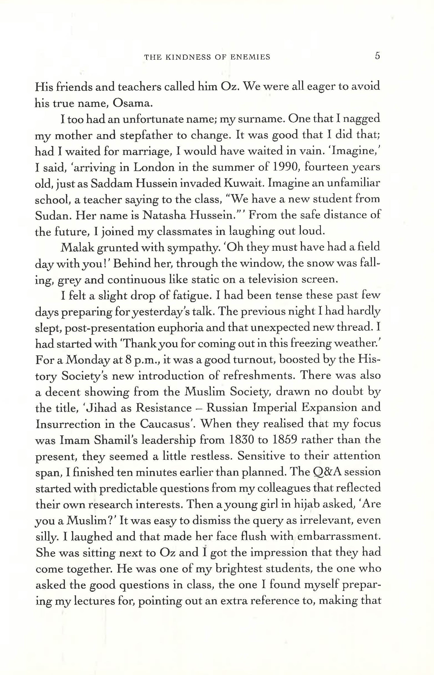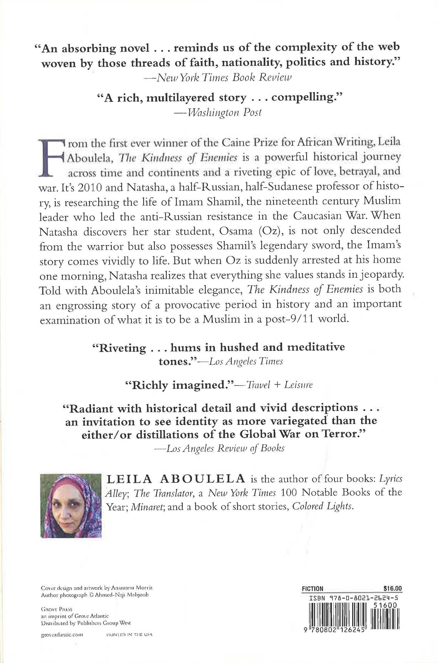From the first ever winner of the Caine Prize for African Writing, Leila Aboulela, The Kindness of Enemies is a powerful historical journey across time and continents and a riveting epic of love, betrayal, and war. It's 2010 and Natasha, a half-Russian, half-Sudanese professor of history, is researching the life of Imam Shamil, the nineteenth century Muslim leader who led the anti-Russian resistance in the Caucasian War. When Natasha discovers her star student, Osama (Oz), is not only descended from the warrior but also possesses Shamil's legendary sword, the Imam's story comes vividly to life. But when Oz is suddenly arrested at his home one morning, Natasha realizes that everything she values stands in jeopardy. Told with Aboulela's inimitable elegance, The Kindness of Enemies is both an engrossing story of a provocative period in history and an important examination of what it is to be a Muslim in a post-9/11 world.