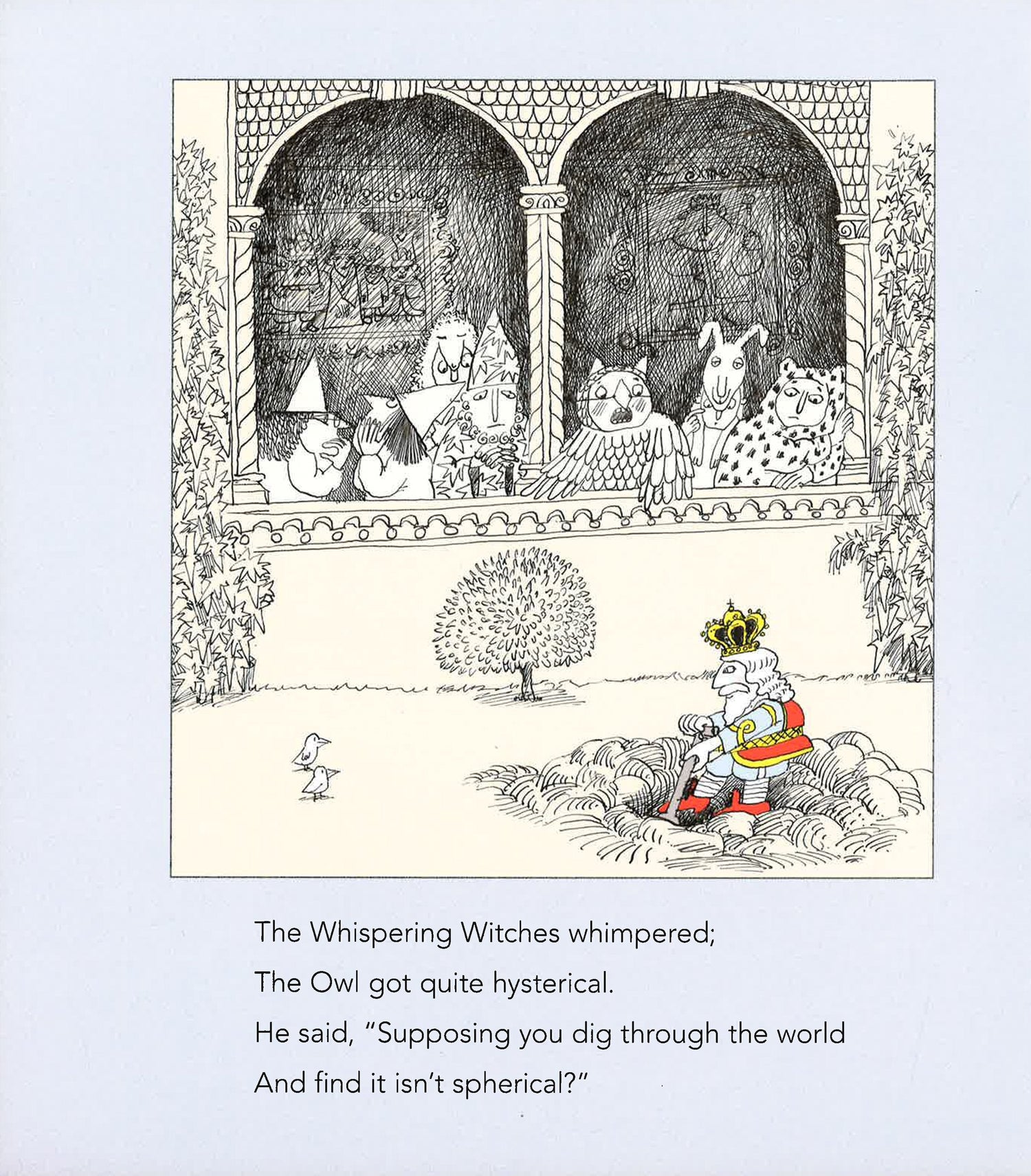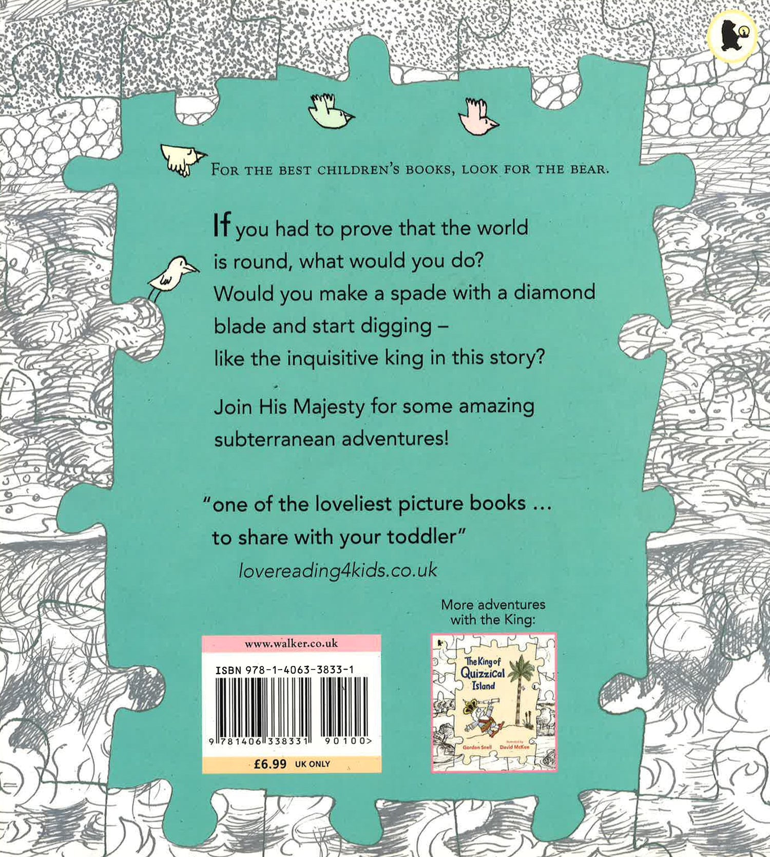 It's time to dig deep in the second instalment of the extraordinary adventures of the King of Quizzical Island. The King of Quizzical Island/To prove the world is round,/Made a singular spade with a diamond blade/ And began to dig in the ground. The resolute King of Quizzical Island begins to dig a tunnel so deep that it will take him to the other side of the world. His quest leads him right down into the heart of the earth where he encounters all kinds of mysterious and mythical creatures, including the Monarch of Calcium, a huge Giant and a Dinosaur and Dragon perched in two large armchairs. Will he make it to the other side? What treasures of wisdom will he discover?