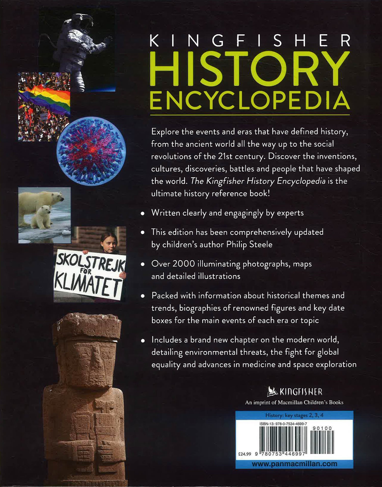 History leaps from the page in this completely revised and updated edition of the critically acclaimed Kingfisher History Encyclopedia. From humankind's earliest history right through to the technological and social revolutions of the current day, this trusted reference provides a one-stop source for research, and is the perfect companion to any study of world history. The encyclopedia is organized chronologically and then thematically within each time period. A timeline runs across the top of each page for context. Each section includes biographies of important people and key features on the art, architecture, and technology of the period. A brand-new chapter details modern-day events, such as the fight for equality, the threat of climate change, the COVID-19 crisis, and space exploration and discoveries. With more than 2,000 full-colour illustrations, photographs, and source materials, as well as research-friendly back matter and index, this encyclopedia provides a beautiful, authoritative reference that is essential for any home, school, or library.