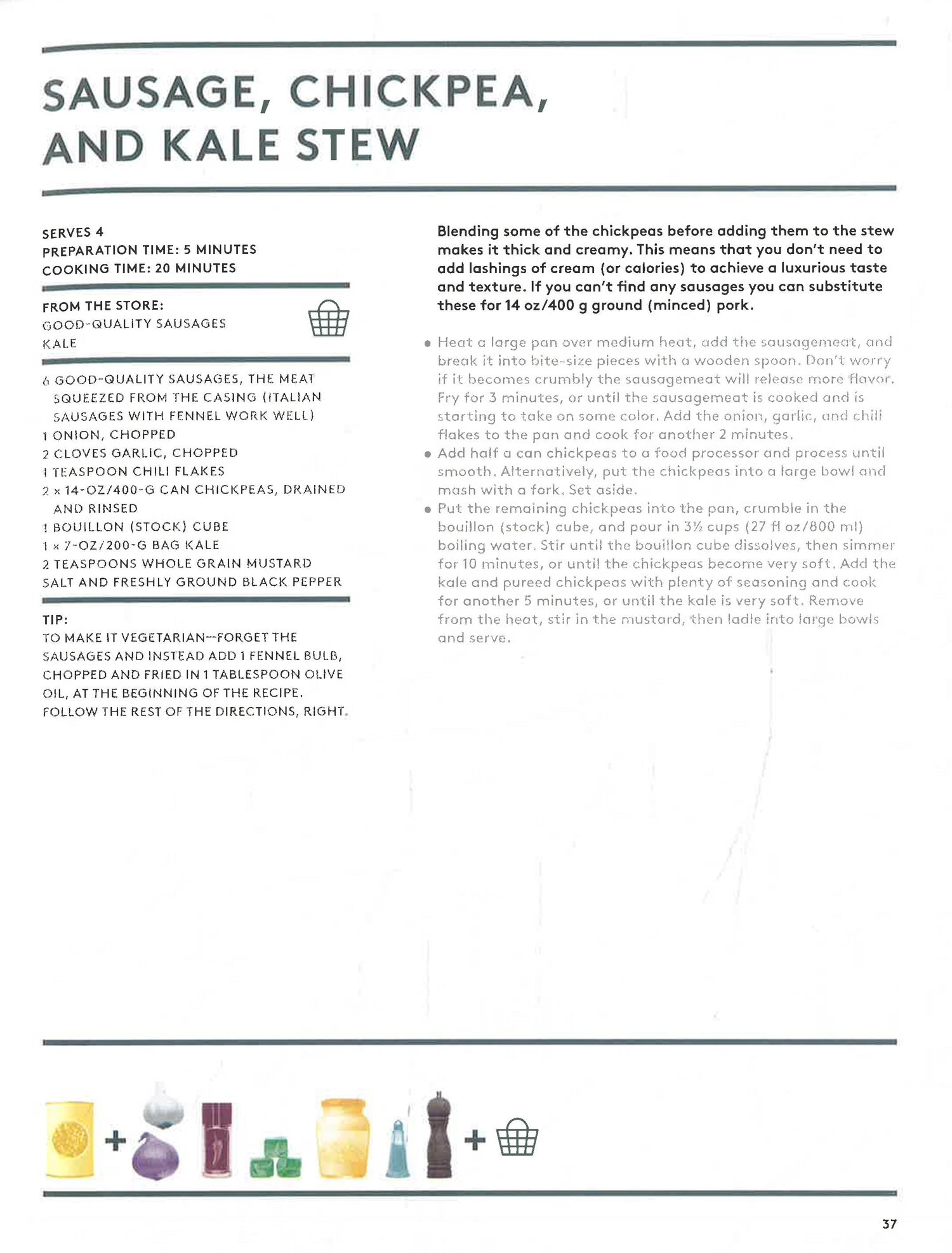With a perfectly stocked kitchen shelf, you just need to pick up two ingredients from the store and you can make a delicious meal.