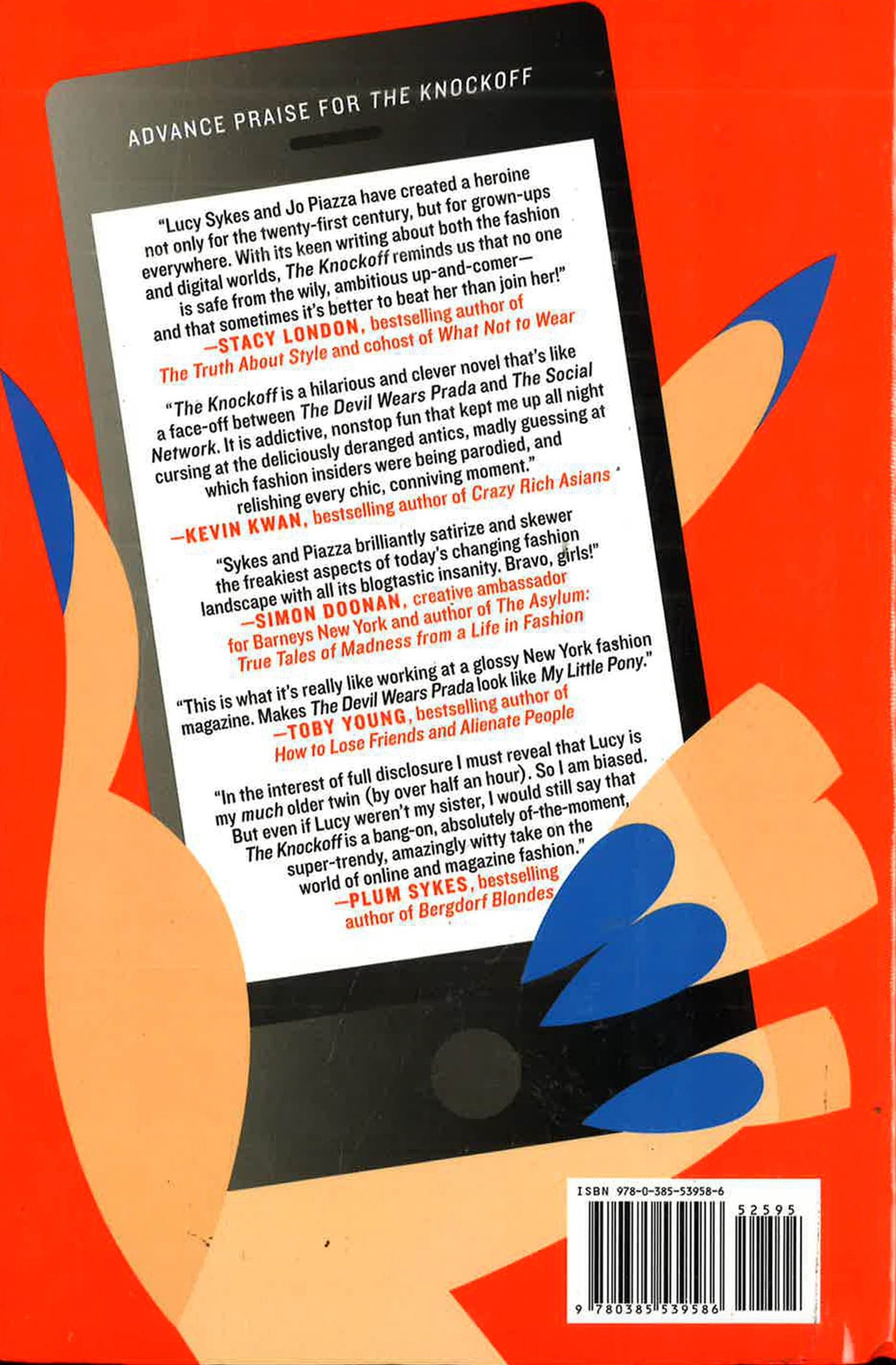An outrageously stylish, wickedly funny novel of fashion in the digital age, "The Knockoff" is the story of Imogen Tate, editor in chief of "Glossy" magazine, who finds her twentysomething former assistant Eve Morton plotting to knock Imogen off her pedestal, take over her job, and reduce the magazine, famous for its lavish 768-page September issue, into an app.