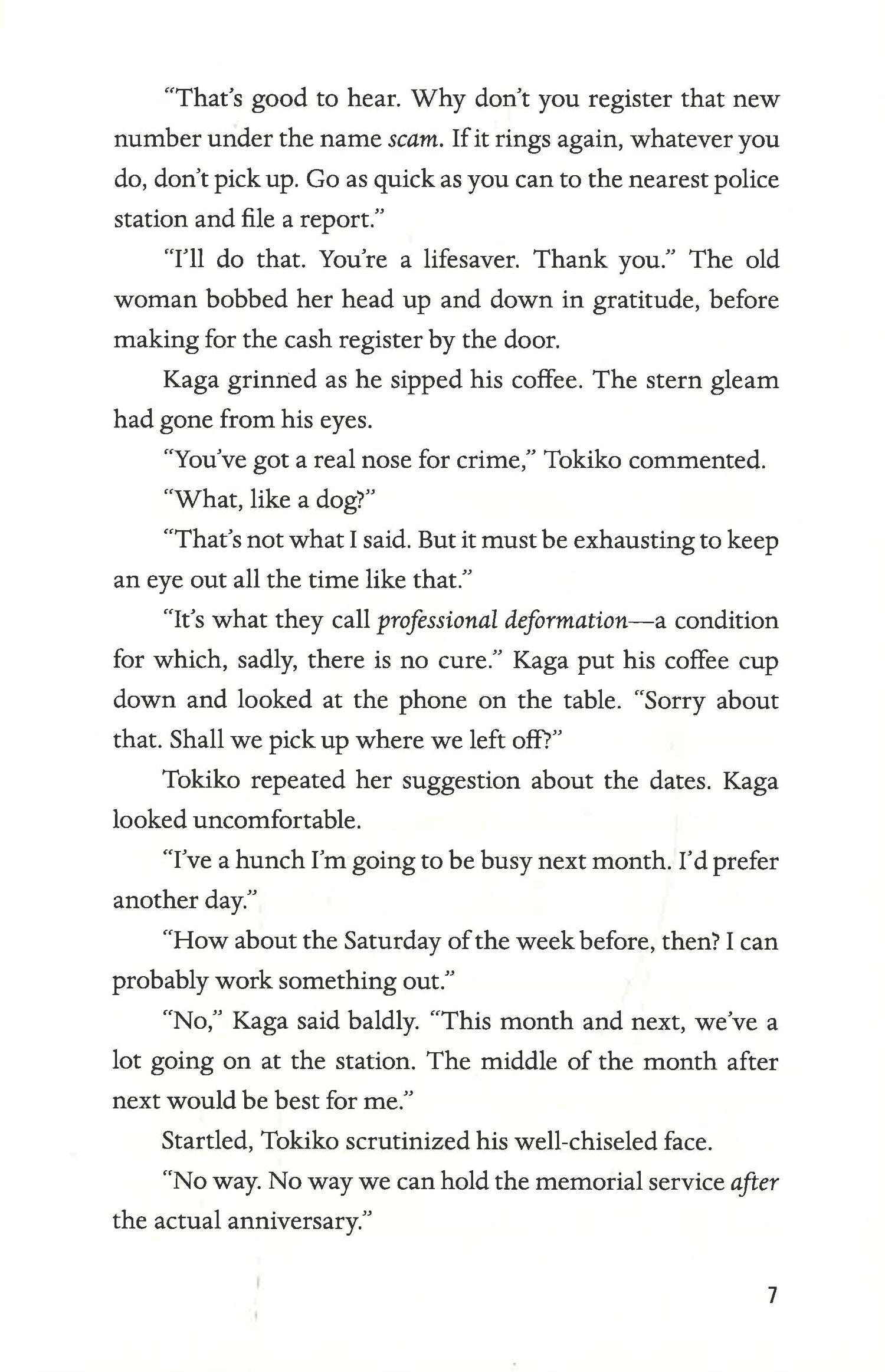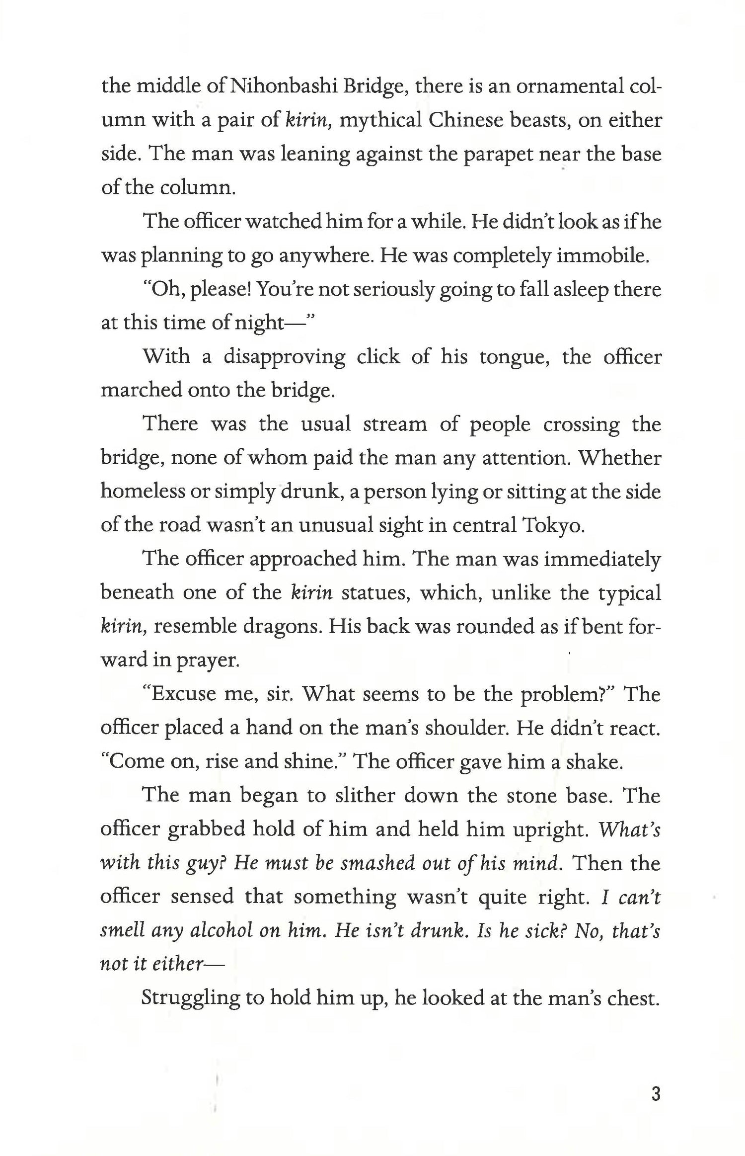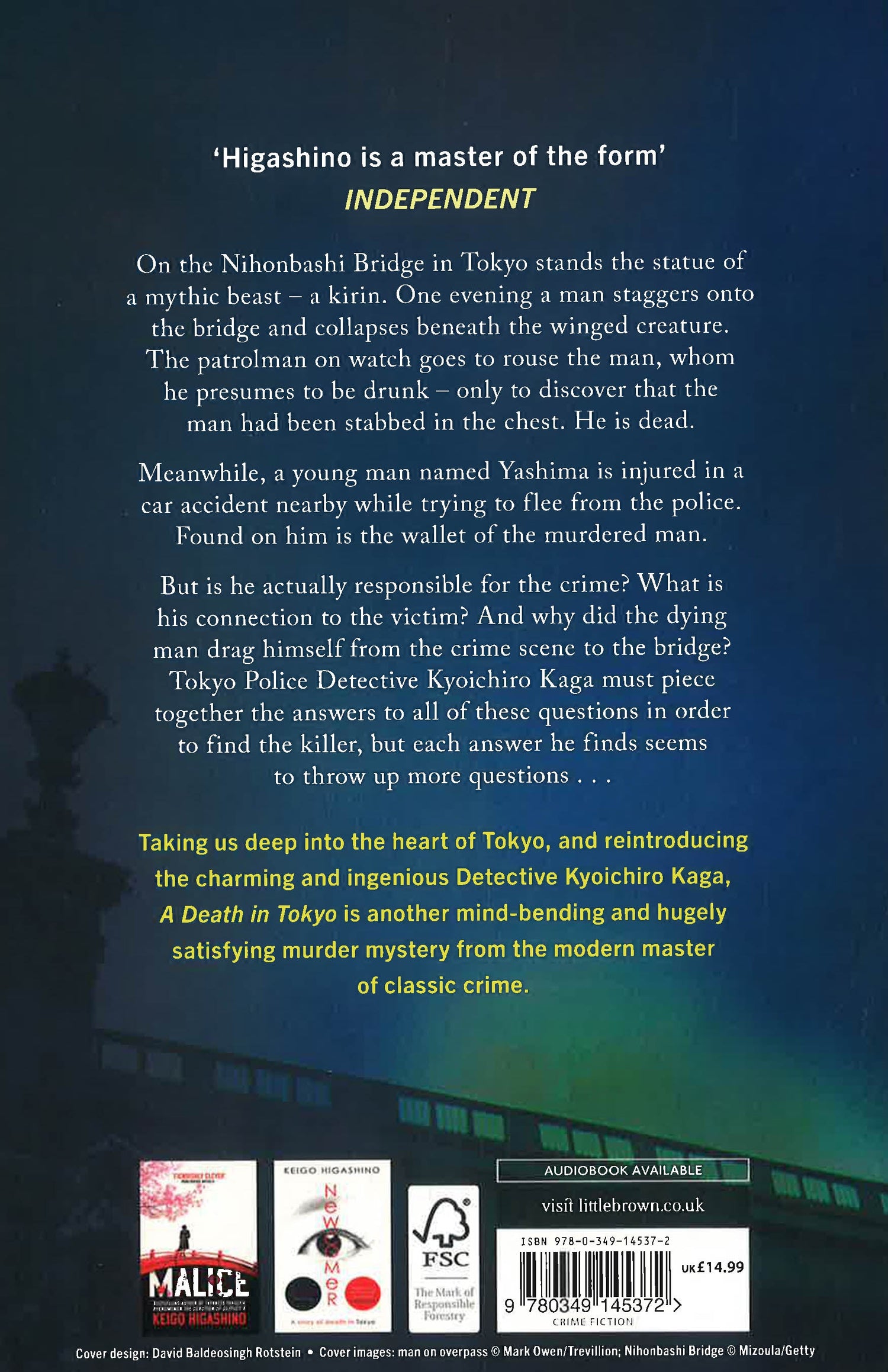 The third and penultimate novel in the Detective Kyoichiro Kaga series by bestselling Japanese crime writer Keigo Higashino On the Nihonbashi Bridge in Tokyo stands the statue of a mythic beast - a kirin. One evening a man staggers onto the bridge and collapses beneath the winged creature. The patrolman on watch goes to rouse the man, who he presumes to be drunk - only to discover that the man had been stabbed in the chest. He is dead. Meanwhile, a young man named Yashima is injured in a car accident nearby while trying to flee from the police. Found on him is the wallet of the murdered man. But is he actually responsible for the crime? What is his connection to the victim? And why did the dying man drag himself from the crime scene to the Nihonbashi Bridge? Tokyo Police Detective Kyoichiro Kaga must piece together the answers to all of these questions in order to find the killer, but each answer he finds seems to throw up more questions ... Taking us deep into the heart of Tokyo, and reintroducing the charming and ingenious Detective Kyoichiro Kaga, A Death in Tokyo is another mind-bending and hugely satisfying murder mystery from the modern master of classic crime.