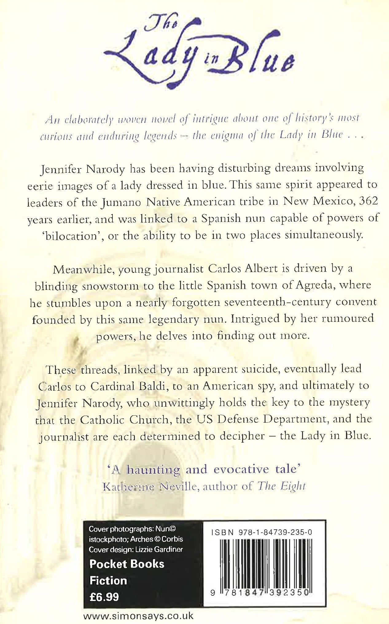 These threads, linked by an apparent suicide, lead Carlos to Father Giusseppe Baldi, to an American spy, and ultimately to Los Angeles, where Jennifer Narody unwittingly holds the key to the mystery that the Catholic Church, the US Defense Department, and the journalist are each determined to decipher -- the Lady in Blue.
