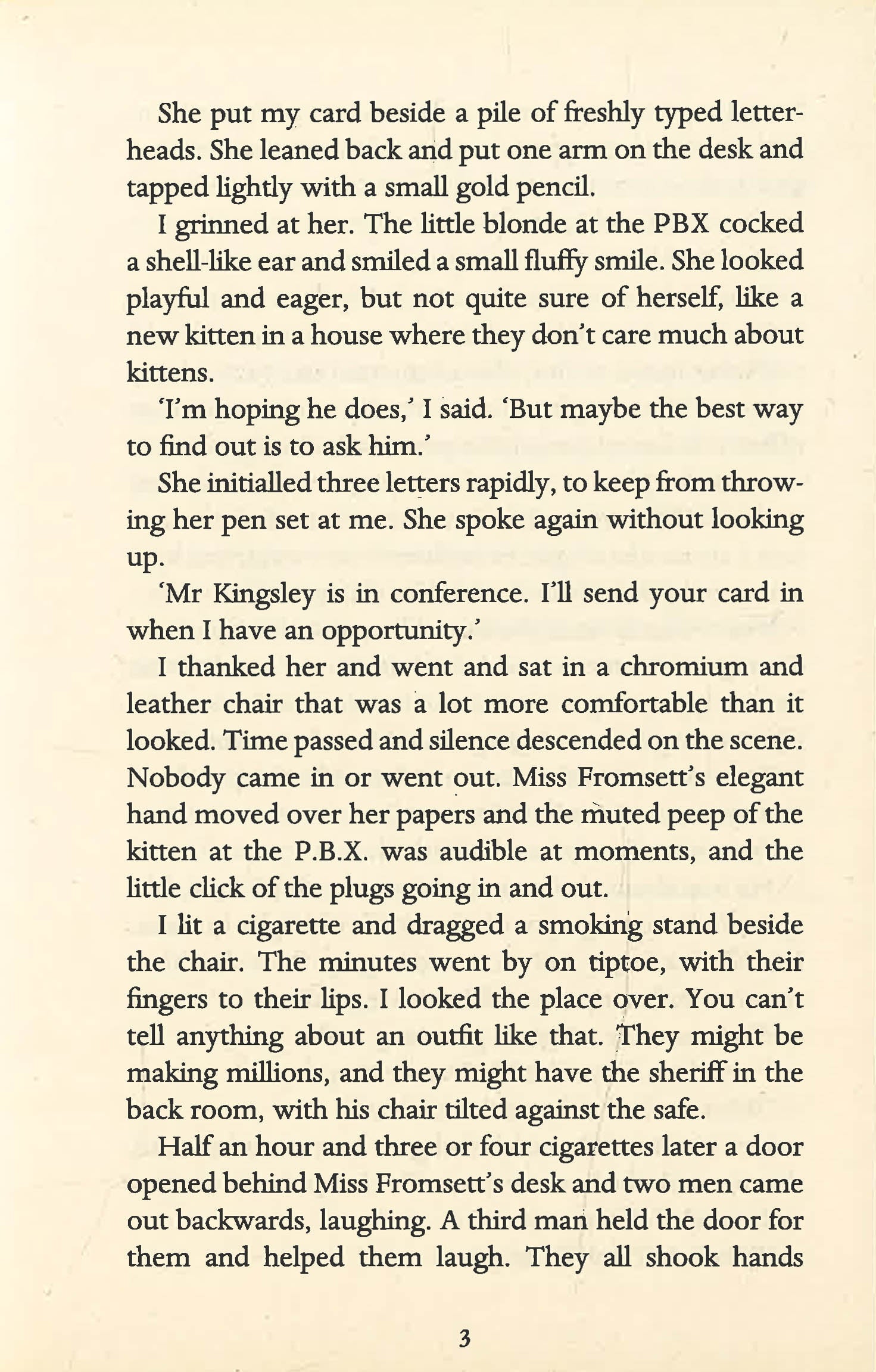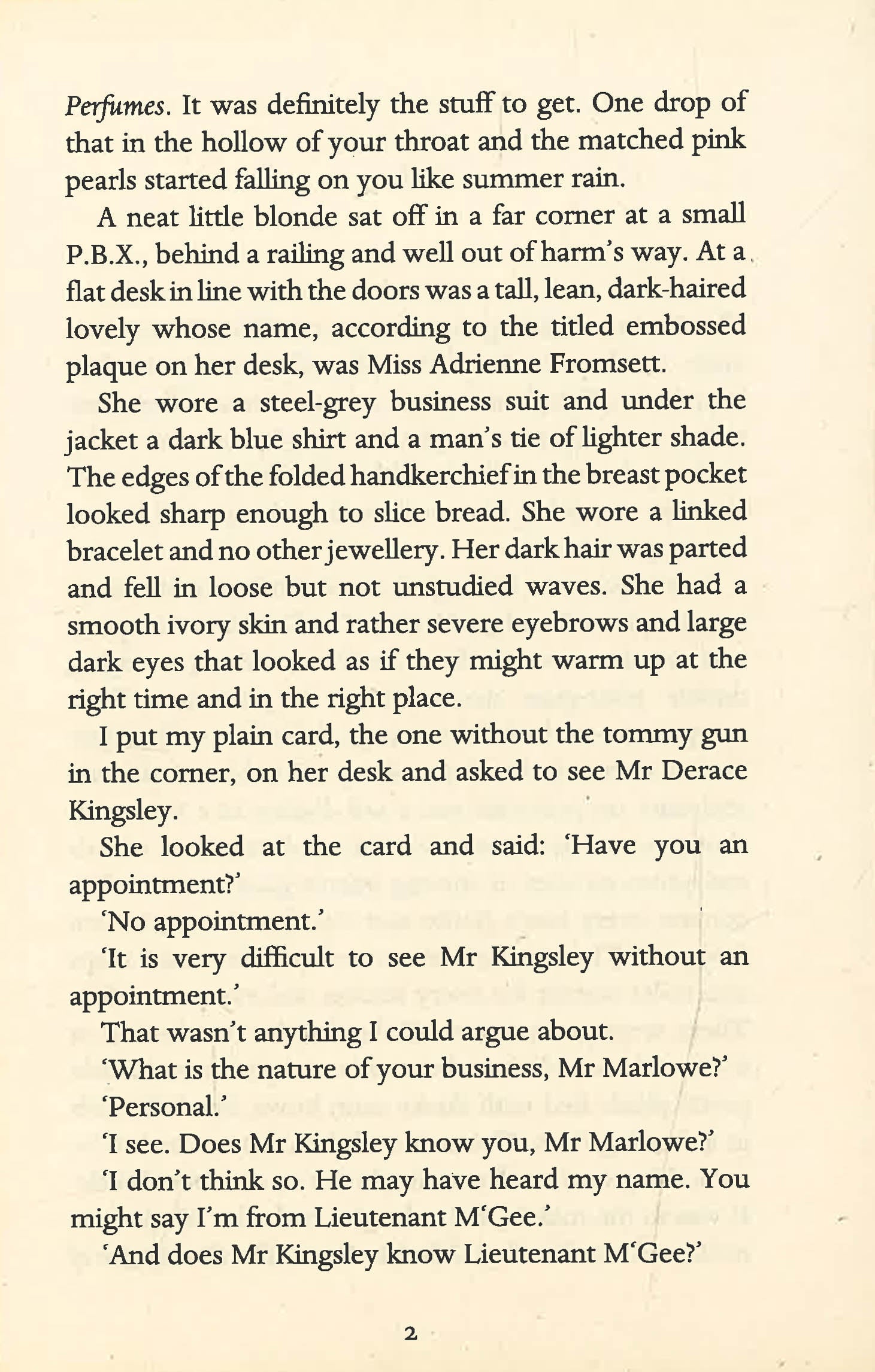 A couple of missing wives one a rich man's and one a poor man's?become the objects of Marlowe's investigation. One of them may have gotten a Mexican divorce and married a gigolo and the other may be dead. Marlowe's not sure he cares about either one, but he's not paid to care.