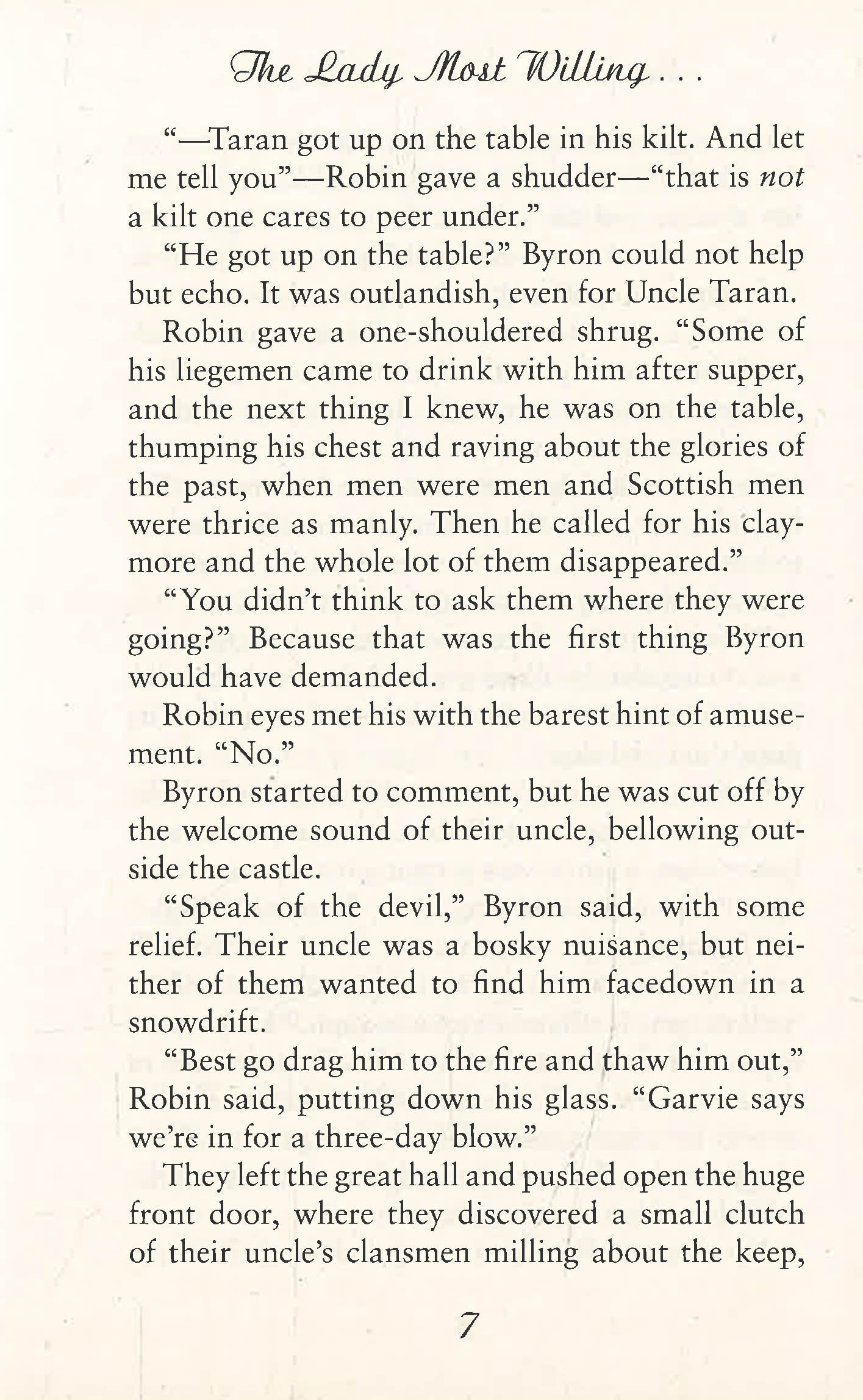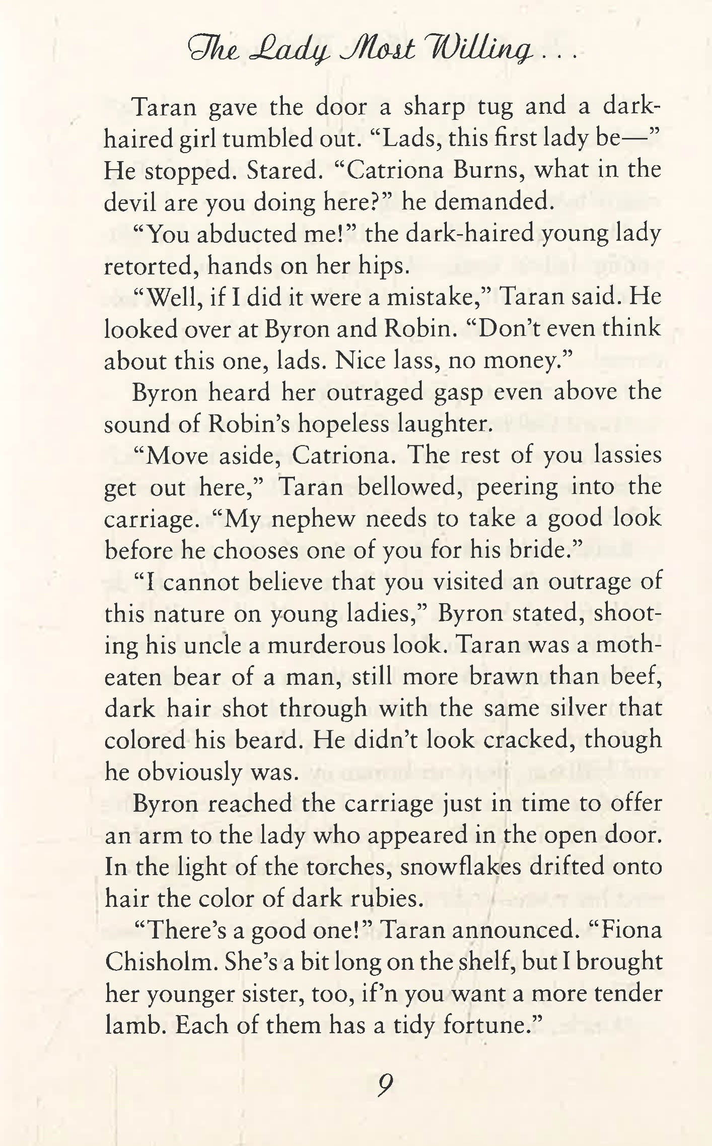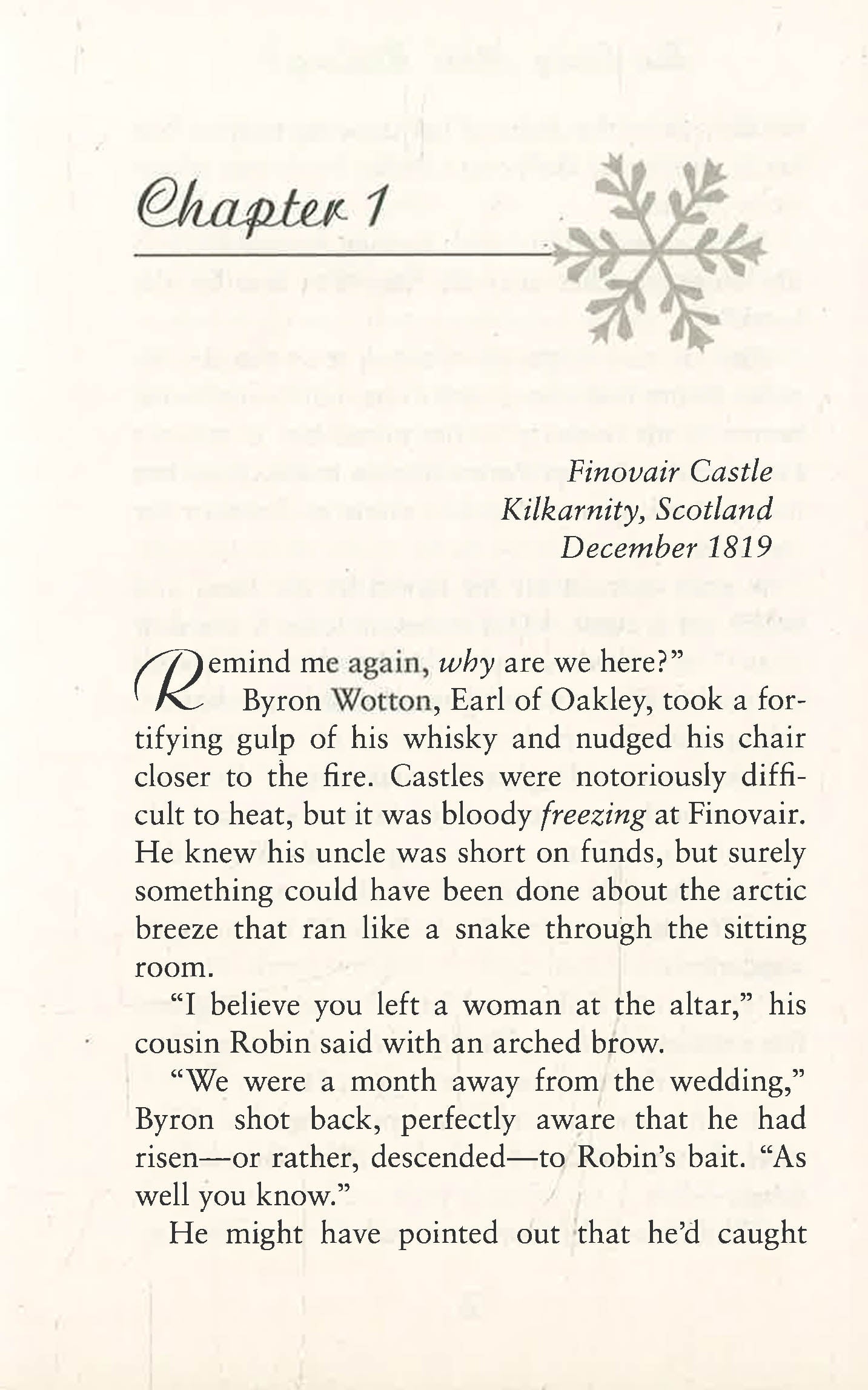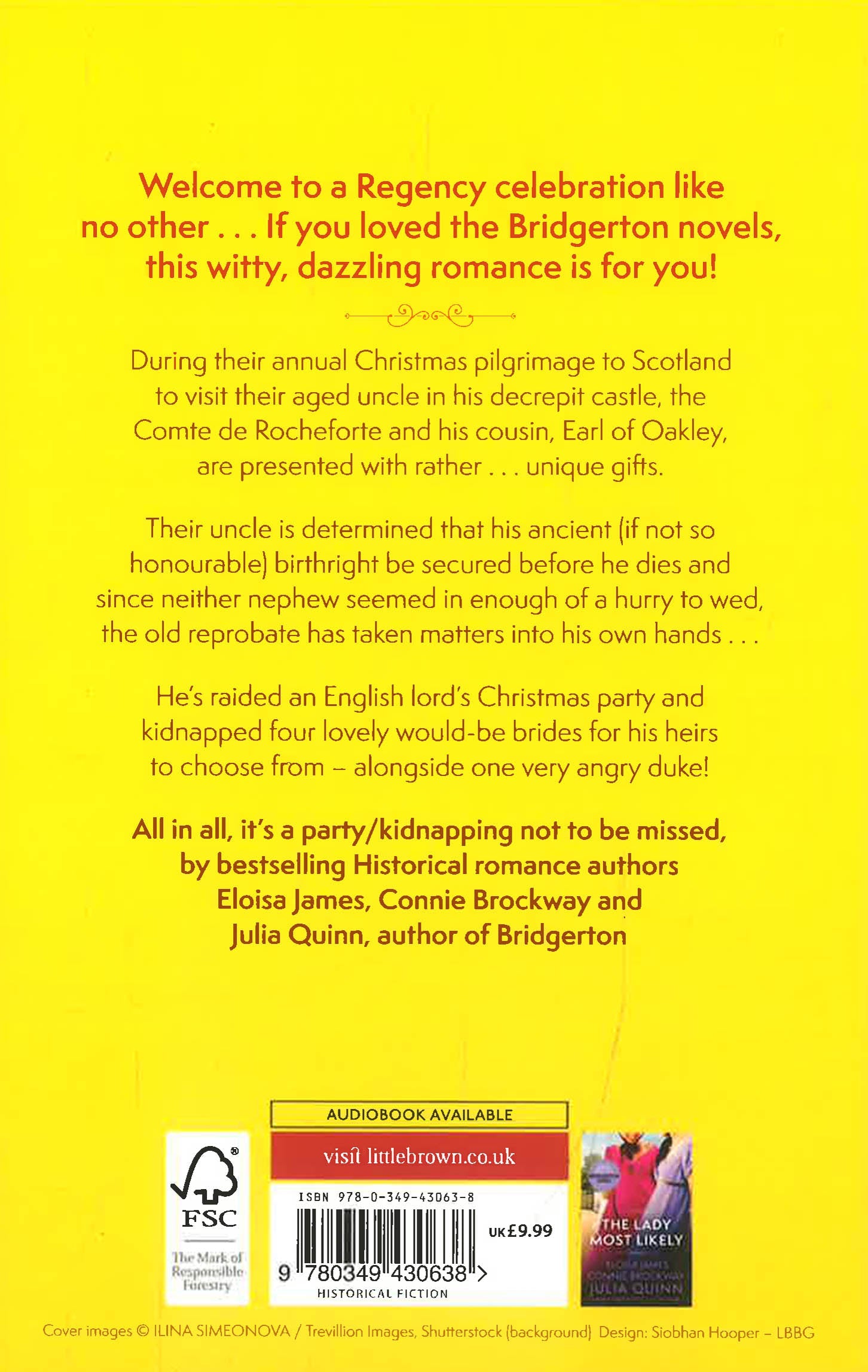 During their annual Christmas pilgrimage to Scotland to visit their aged uncle in his decrepit castle, the Comte de Rocheforte and his cousin, Earl of Oakley, are presented with rather . . . unique gifts. Their Uncle is determined that his ancient (if not so honorable) birthright be secured before he dies and since neither nephew seemed in enough of a hurry to wed, the old reprobate has taken matters into his own hands . . . He's raided an English lord's Christmas party and kidnapped four lovely would-be brides for his heirs to choose from - and one very angry duke!