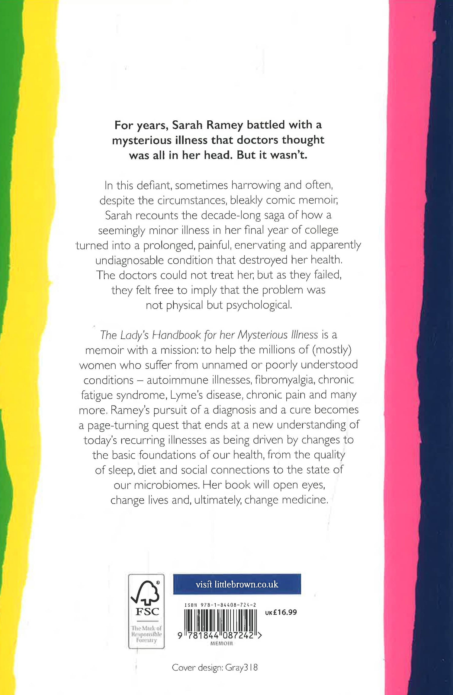 The darkly funny memoir of Sarah Ramey's years-long battle with a mysterious illness that doctors thought was all in her head - but wasn't. A revelation and an inspiration for millions of women whose legitimate health complaints are ignored.In her harrowing, defiant, and unforgettable memoir, Sarah Ramey recounts the decade-long saga of how a seemingly minor illness in her senior year of college turned into a prolonged and elusive condition that destroyed her health but that doctors couldn't diagnose or treat. Worse, as they failed to cure her, they hinted that her devastating symptoms were psychological.The Lady's Handbook for Her Mysterious Illness is a memoir with a mission, to help the millions of (mostly) women who suffer from unnamed or misunderstood conditions: autoimmune illnesses like fibromyalgia and chronic fatigue syndrome, chronic Lyme disease, chronic pain, and many more. Ramey's pursuit of a diagnosis and cure for her own mysterious illness becomes a page-turning medical mystery that reveals a new understanding of today's chronic illnesses as ecological in nature, driven by modern changes to the basic foundations of health, from the quality of our sleep, diet, and social connection to the state of our microbiomes. Her book will open eyes, change lives, and ultimately change medicine.