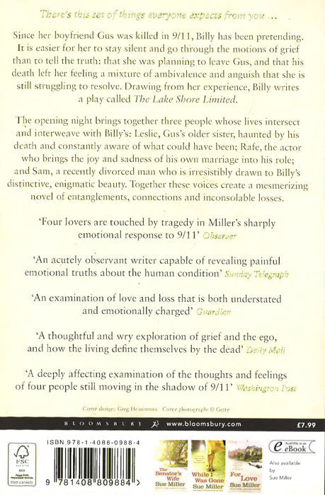 A moving novel of four lives in the shadow of 9/11, from the author of Richard & Judy bestseller The Senator's Wife There's this set of things everyone expects from you... Since her boyfriend Gus was killed in 9/11, Billy has been pretending. It is easier for her to stay silent and go through the motions of grief than to tell the truth: that she was planning to leave Gus, and that his death left her feeling a mixture of ambivalence and anguish that she is still struggling to resolve. Drawing from her experience, Billy writes The Lake Shore Limited. The opening night of the play brings together three people whose lives intersect and interweave with Billy's: Leslie, Gus's older sister, haunted by his death and constantly aware of what could have been; Rafe, the actor who brings the joy and sadness of his own marriage into his role; and Sam, a recently divorced man who is irresistibly drawn to Billy's distinctive, enigmatic beauty. Together these four voices create a mesmerizing novel of entanglements, connections and inconsolable losses.