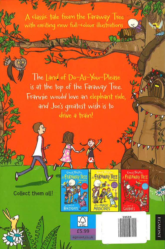 The Land of Do-As-You-Please is at the top of the Faraway Tree. Frannie would love an elephant ride and Joe's greatest wish is to drive a train!