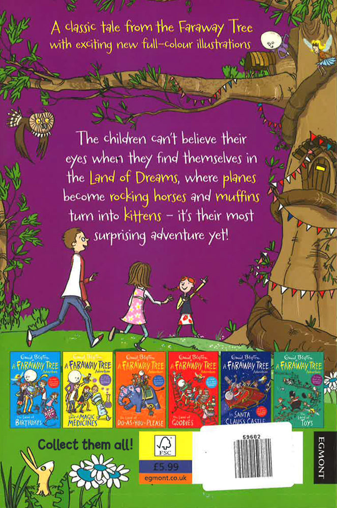 Beth, Joe, Frannie and Rick thought they had had quite enough of adventures, but soon go up the Faraway Tree again and find themselves in the Land of Dreams. The dastardly Sandman makes them fall asleep and Silky has to find a way to get them home in one piece! Along the way, they encounter muffins that turn into kittens, a bus that turns into a plane and a boat, and lots more...